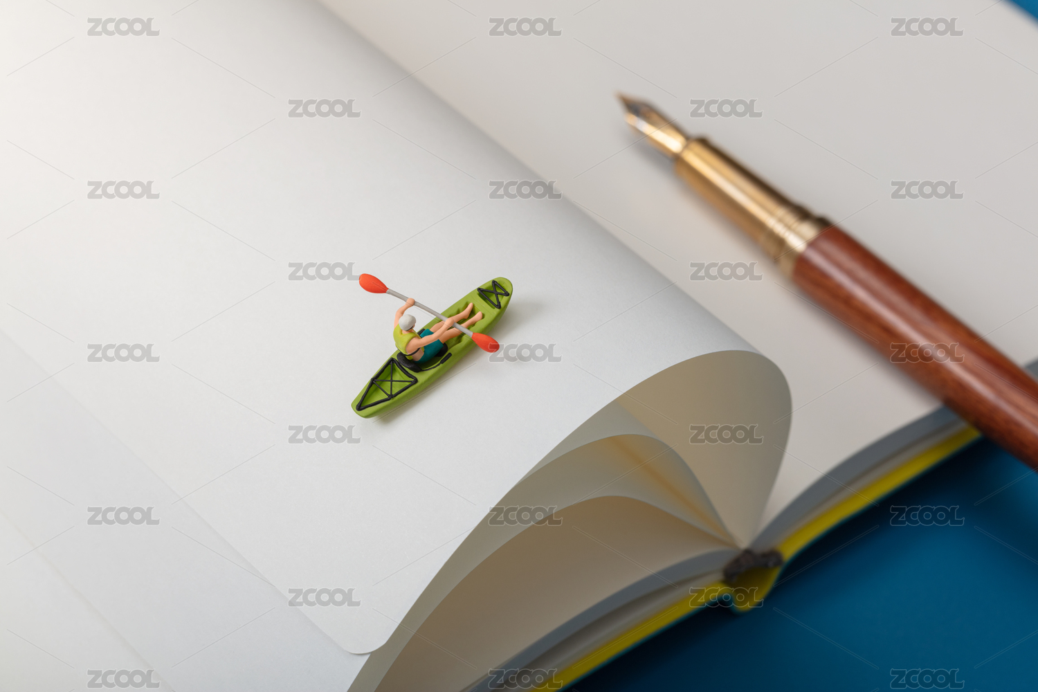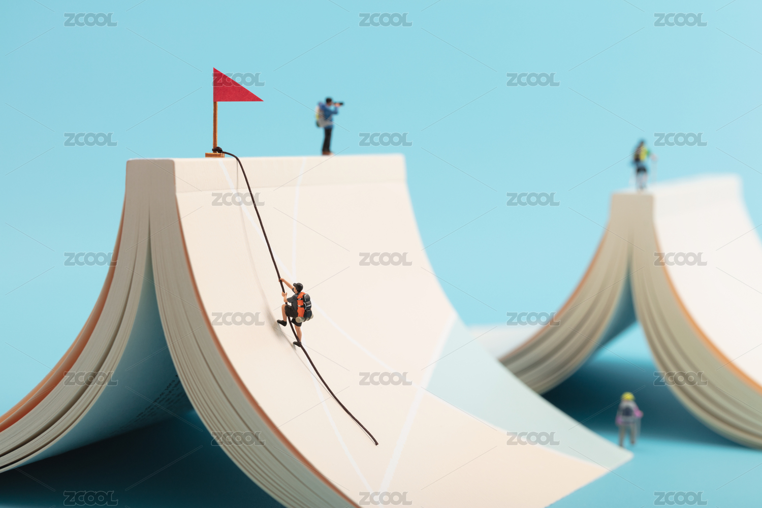 微缩创意骑着自行车在课本上加速冲刺的考生