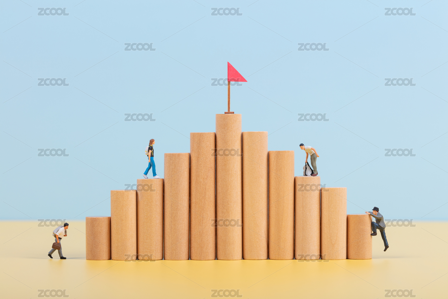 微缩创意圆柱体阶梯教育努力登顶的中小学生