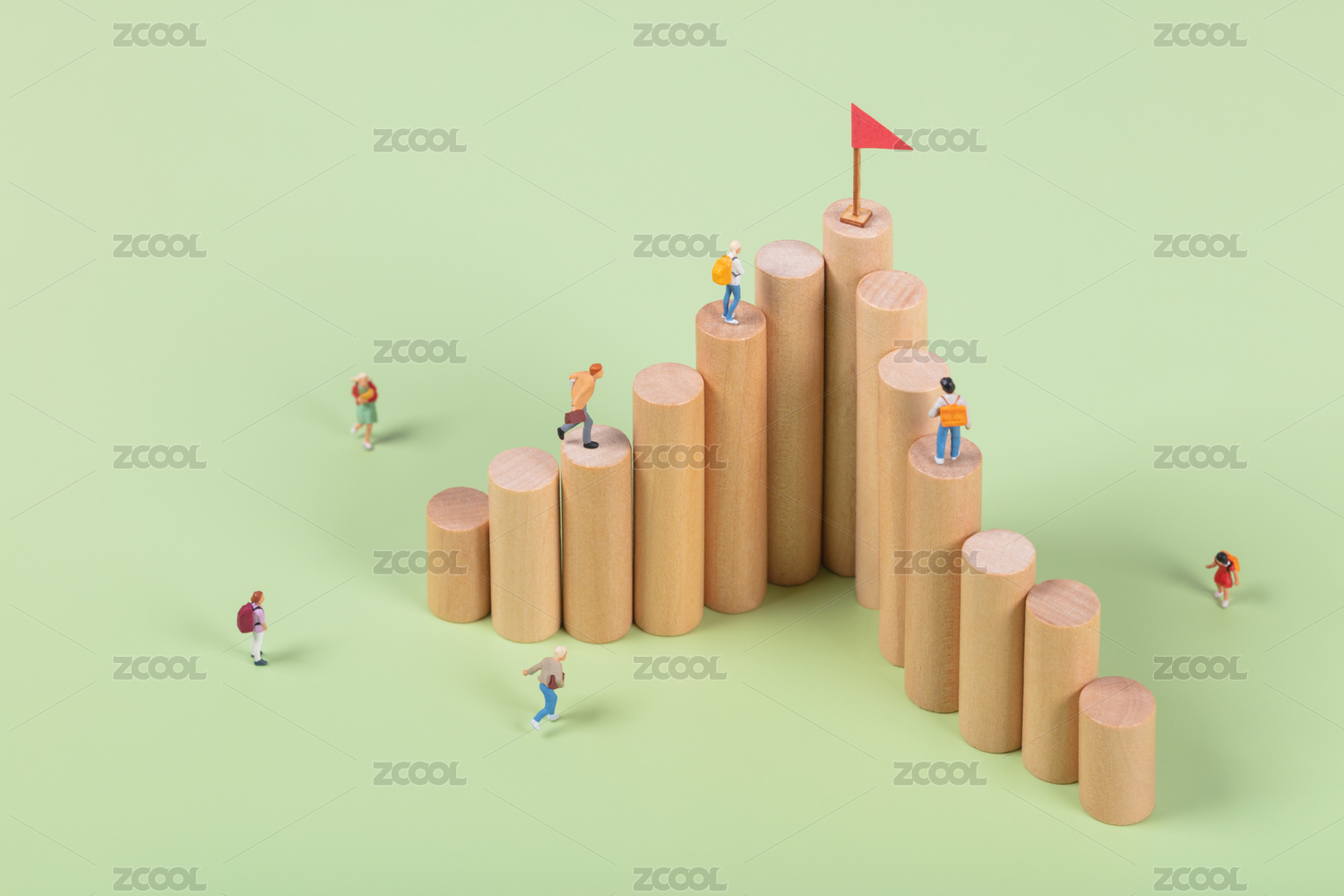 微缩创意圆柱体阶梯努力登顶的人群