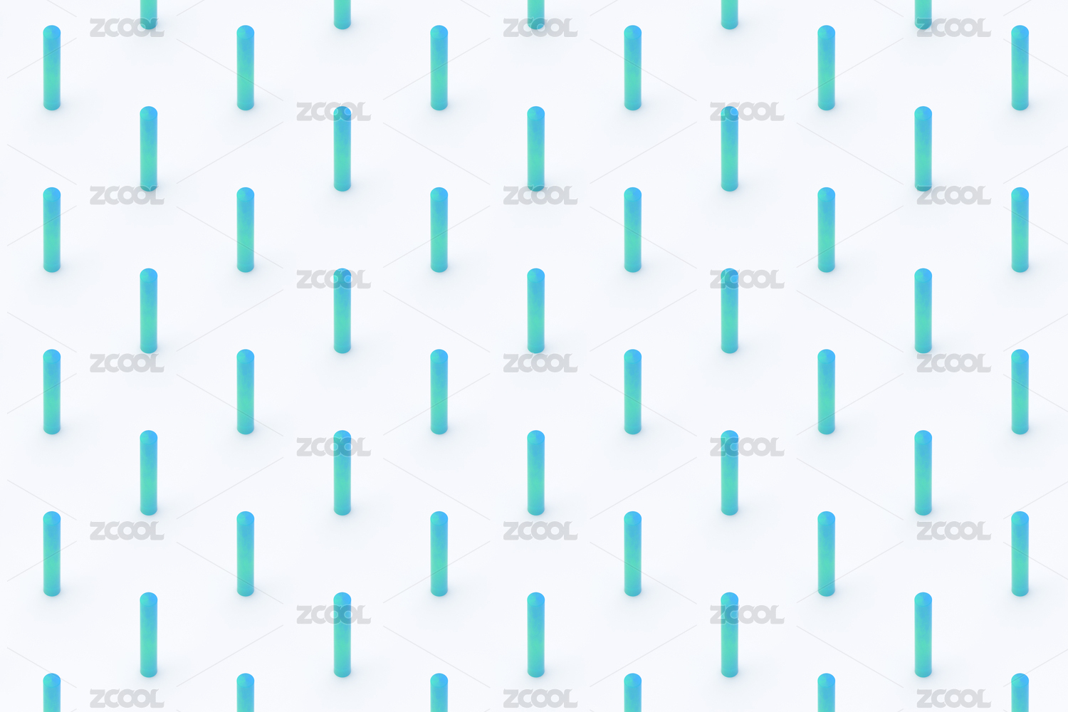 青色背景里的高低错落的白色圆柱体组合