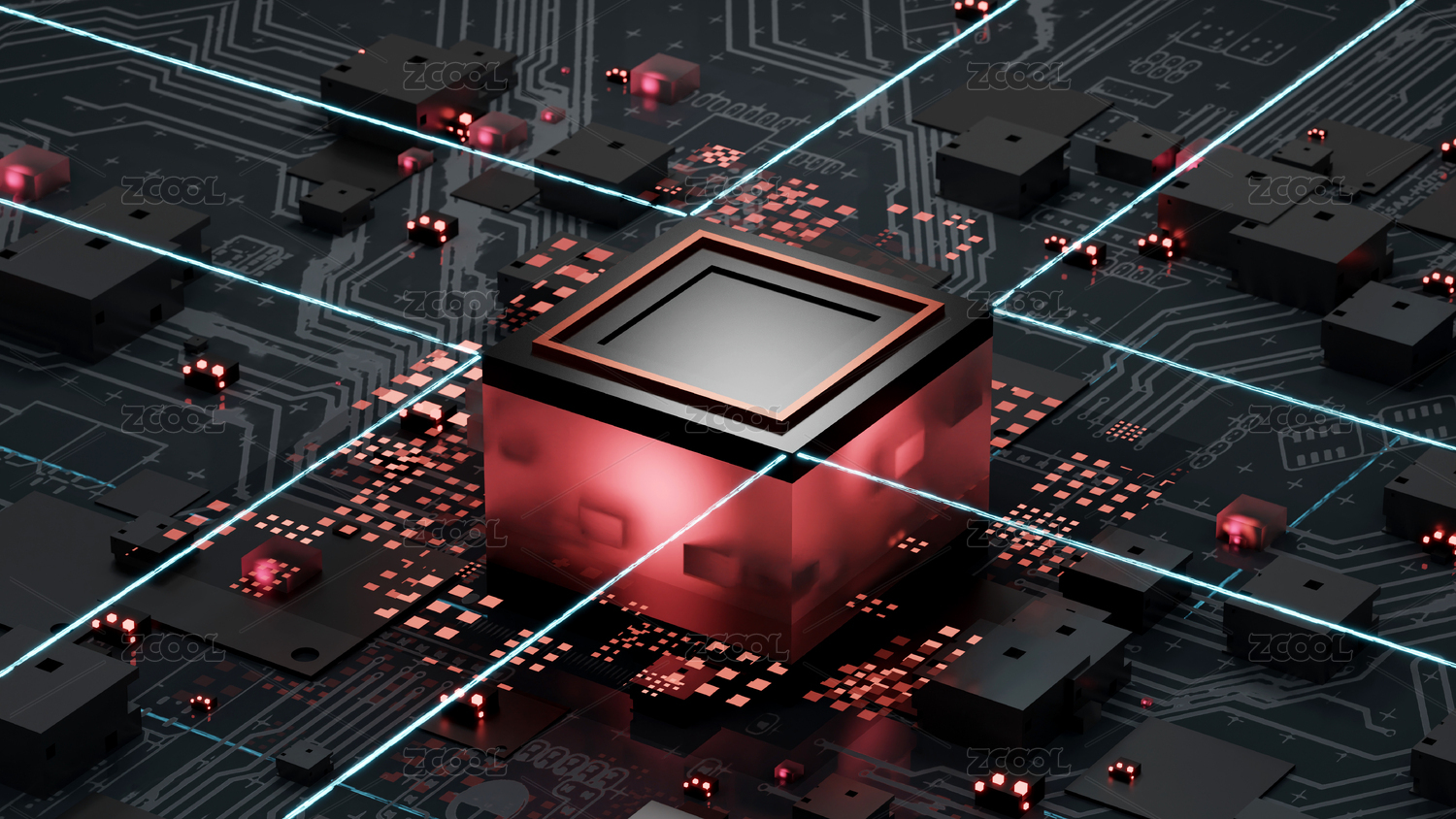 AI芯片商务科技半导体全息红色