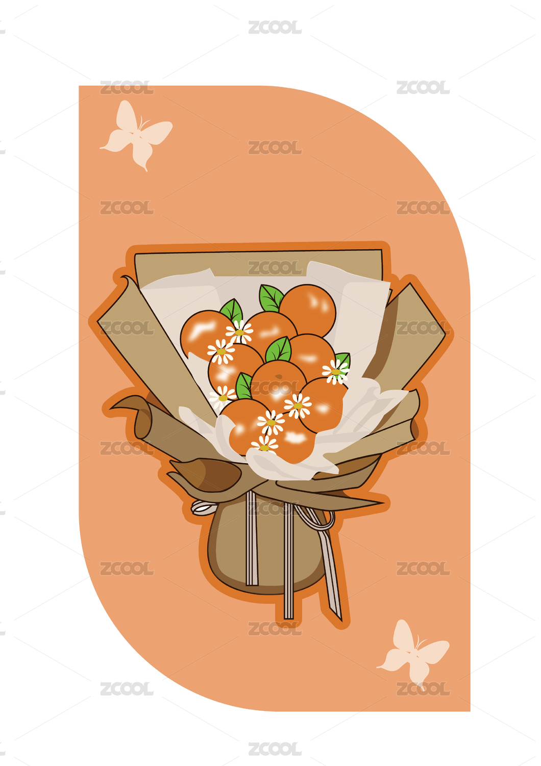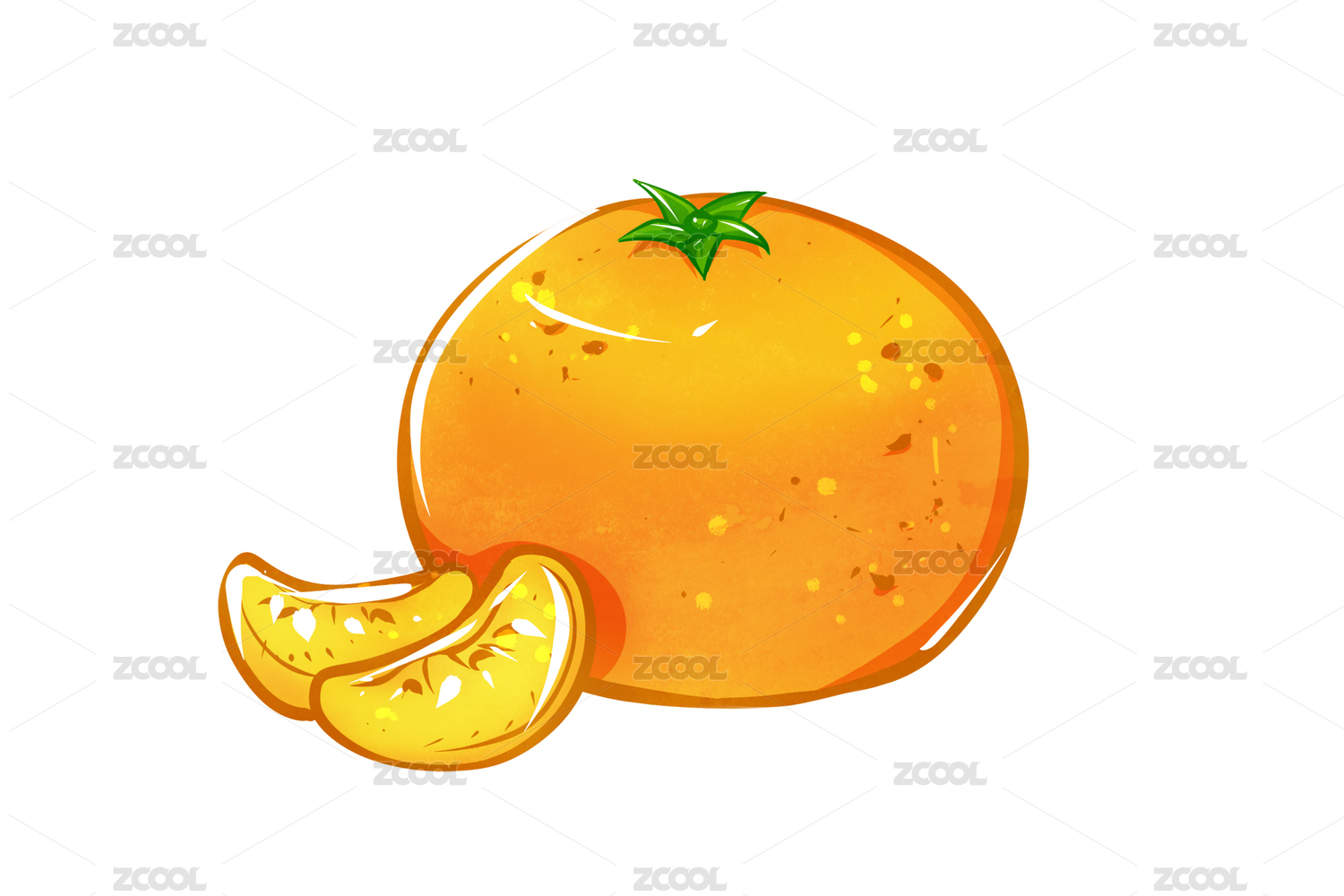 一个手拿橘子的橙发绿眼男孩,水果拟人插画