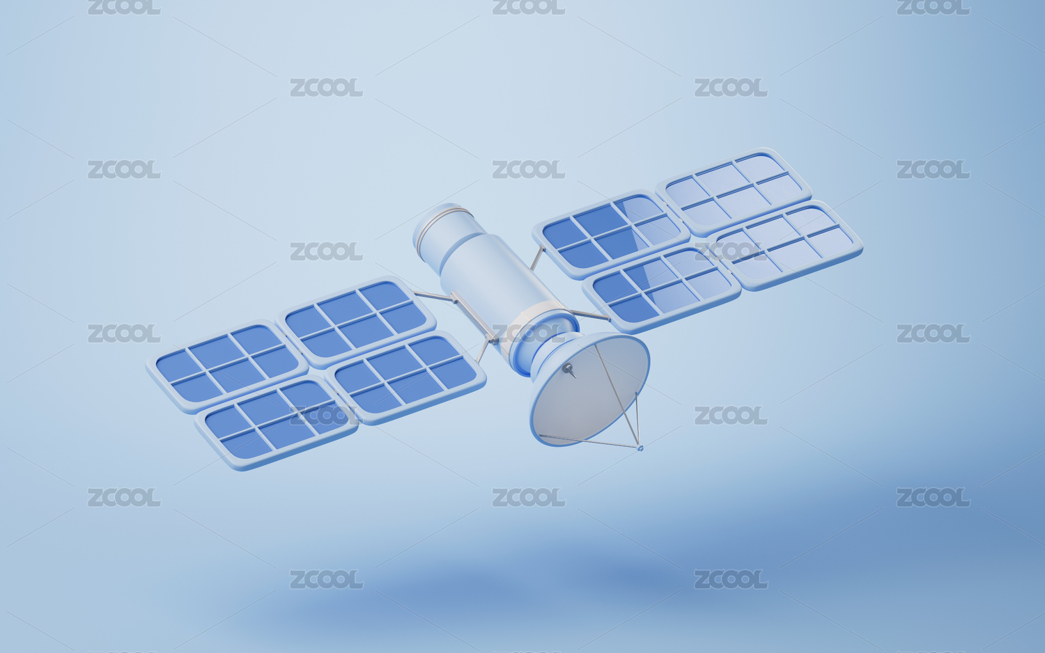 新国潮国风人造卫星无人航天器免扣矢量插画