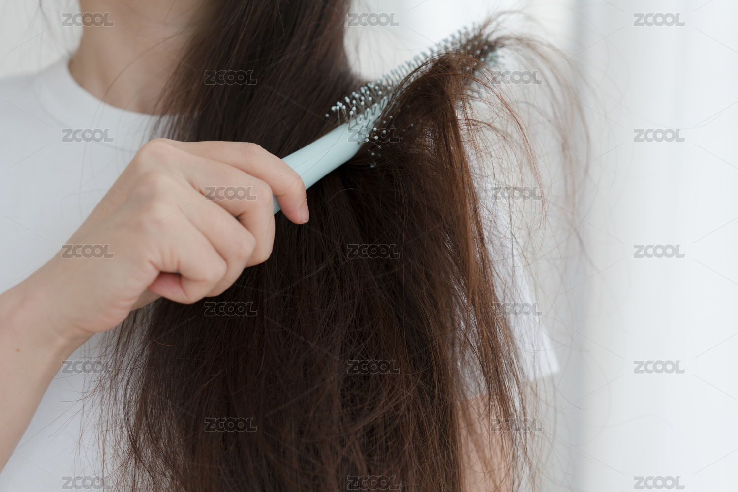 长发女生手拿着梳子在梳头发