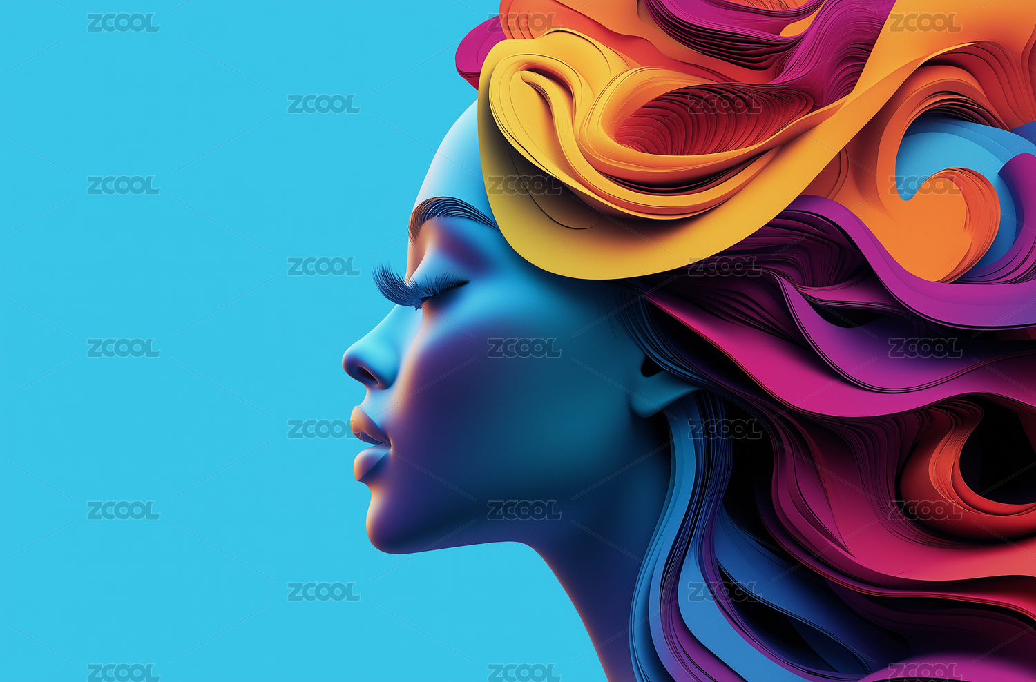 时尚美女头发剪纸风3D插图
