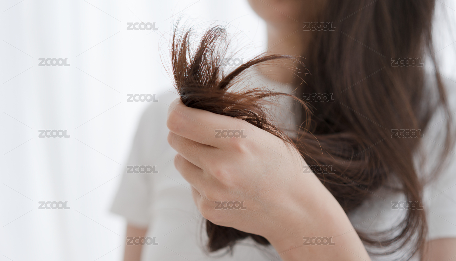女人手拿着头发