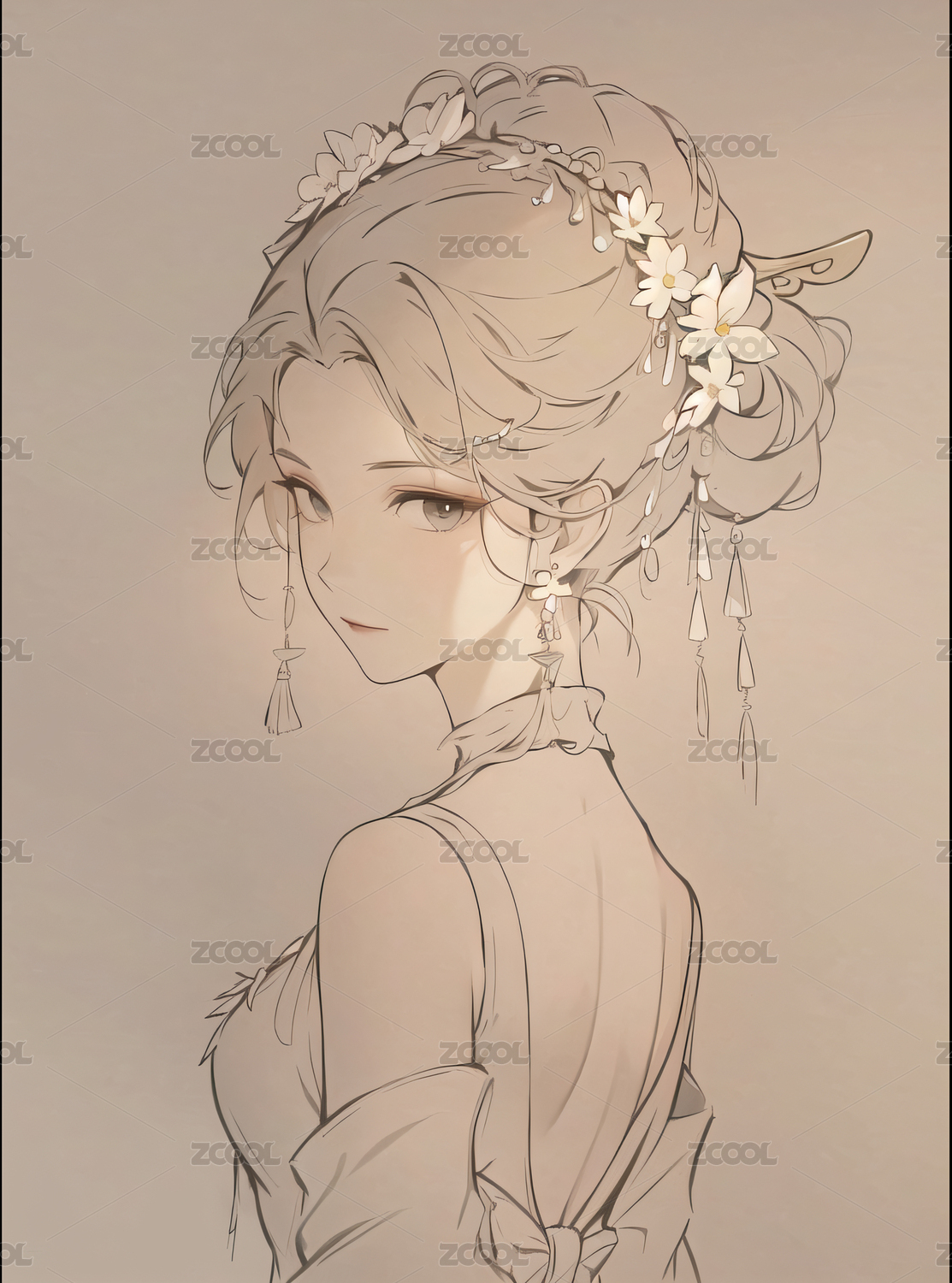 漫画可爱女生人物素描艺术装饰画小清新漫画漫画黑白画