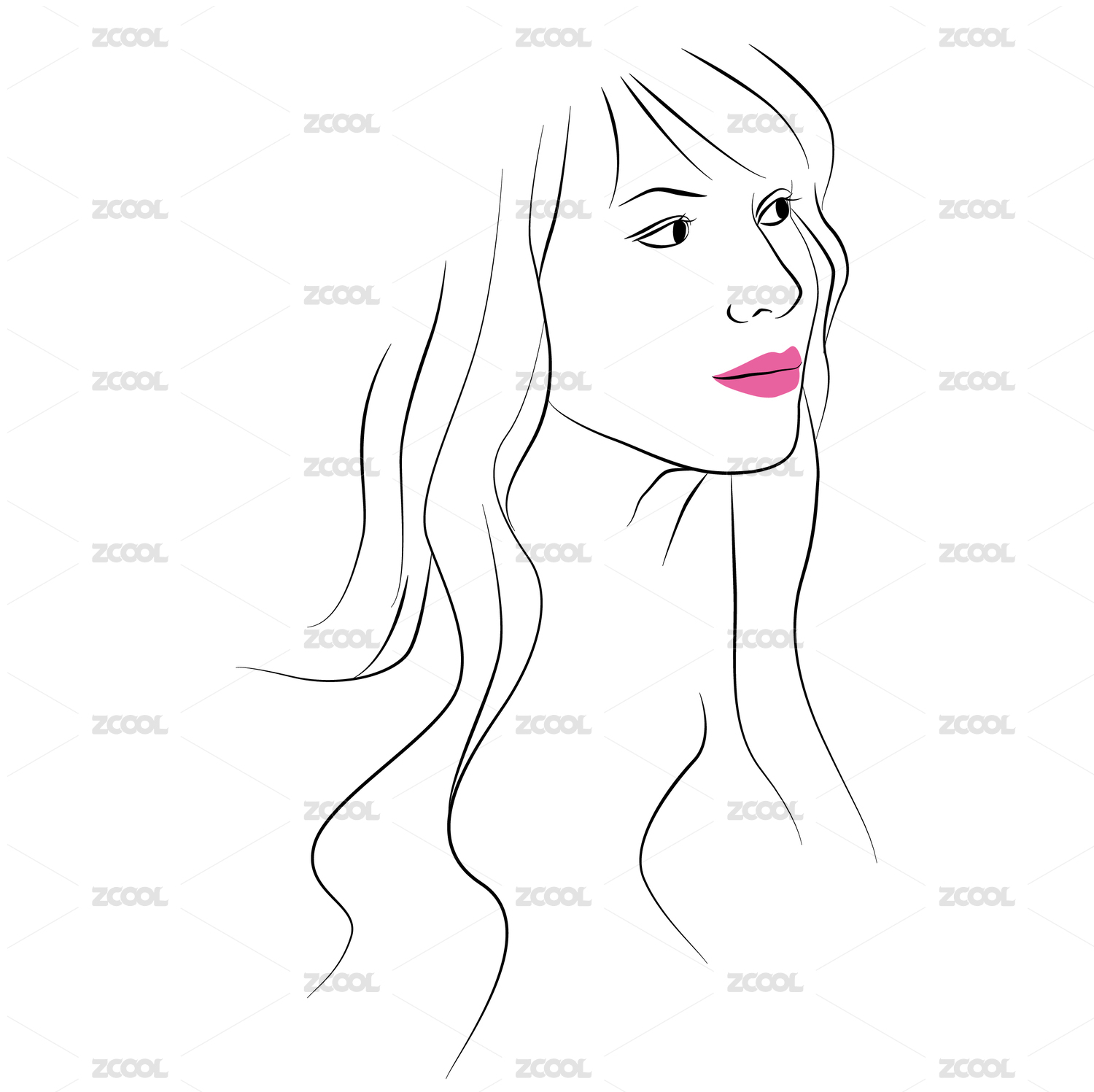 手绘的简约的线条艺术素描年轻时尚女性人物