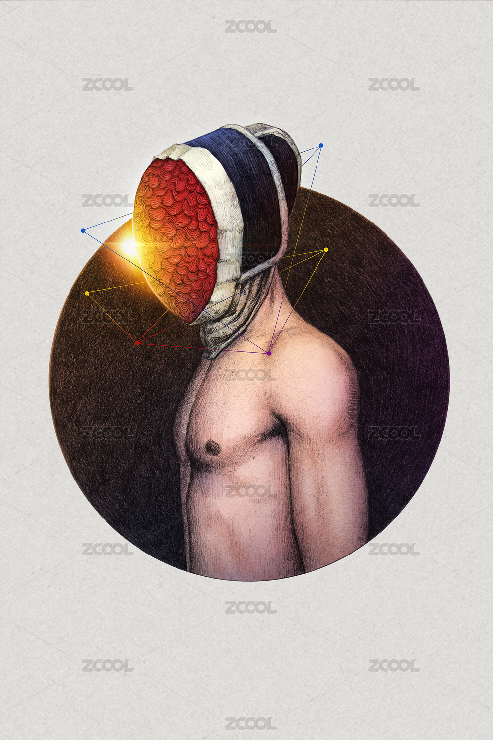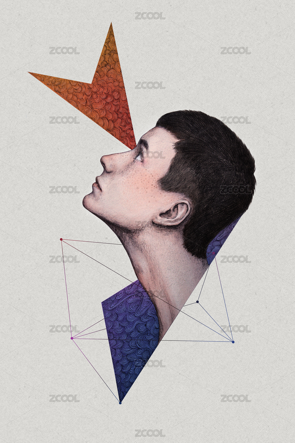 手绘素描美女人物简约画 飘带抽象女人背景画