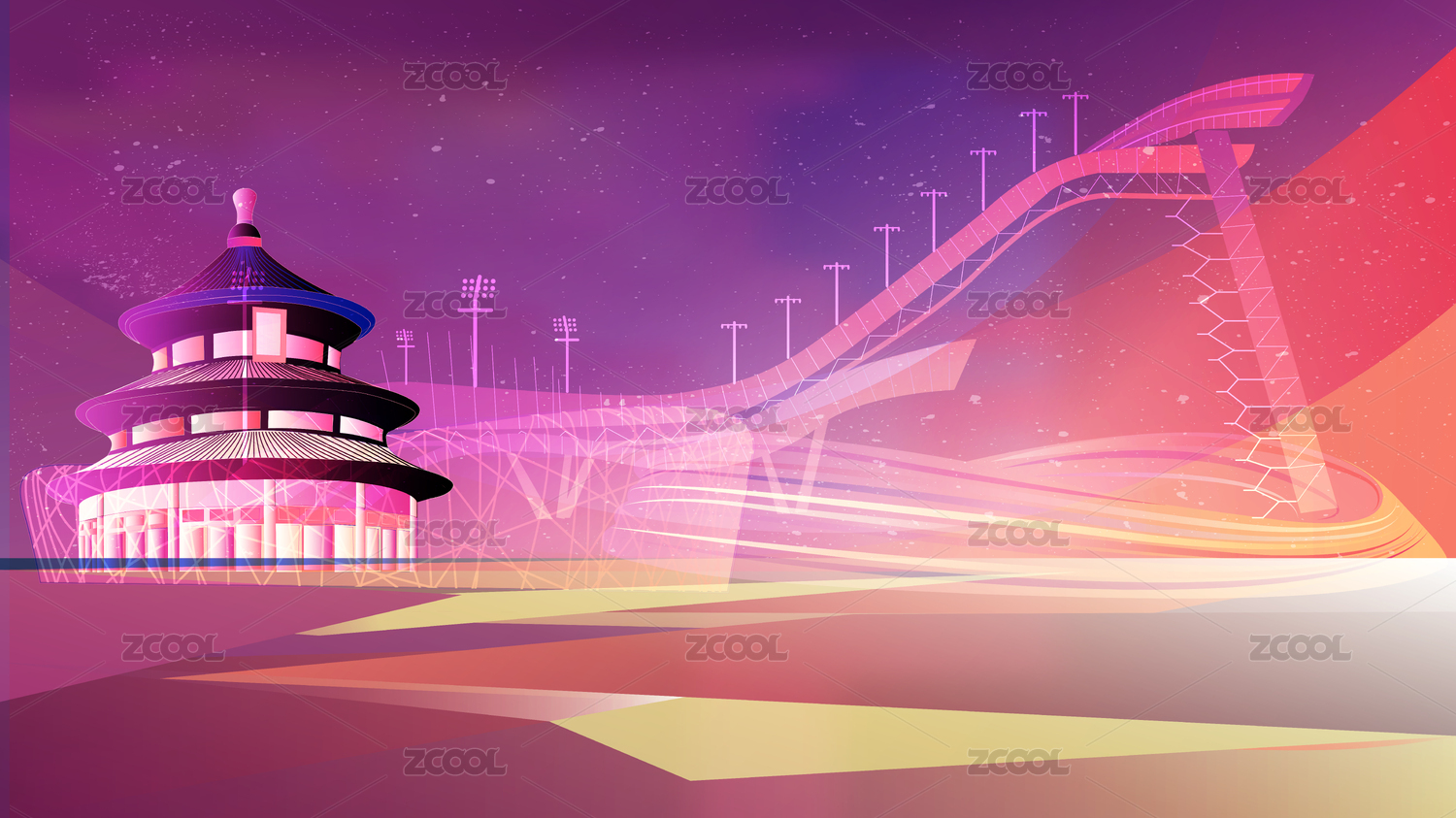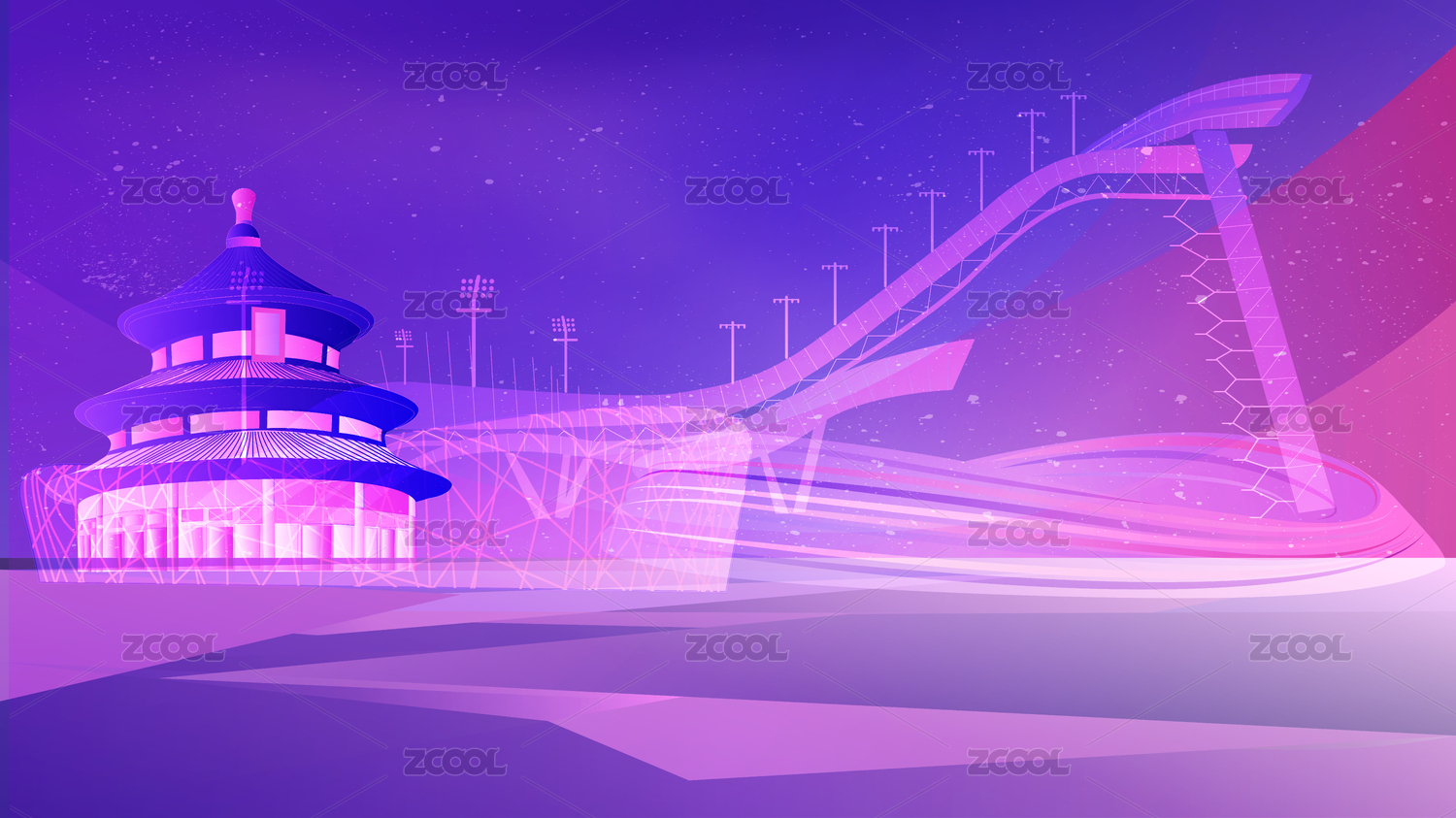 北京冬奥会场馆矢量插画