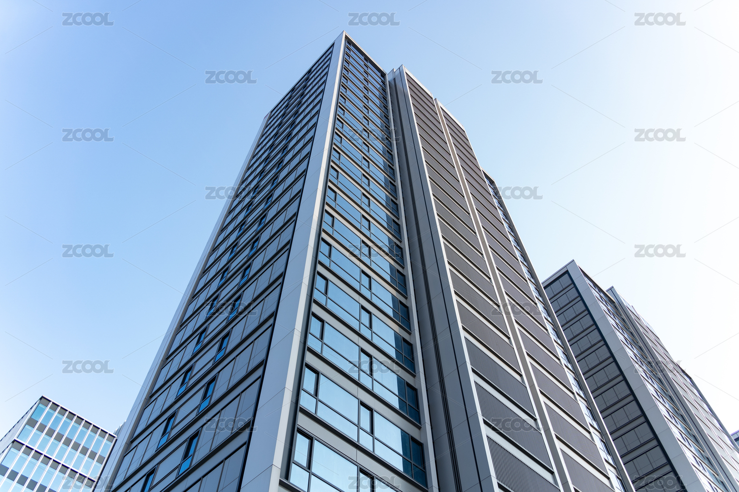线条构图未来的建筑与电路板。深蓝色的、高楼大厦摩天大楼商业现代化城市的未来。