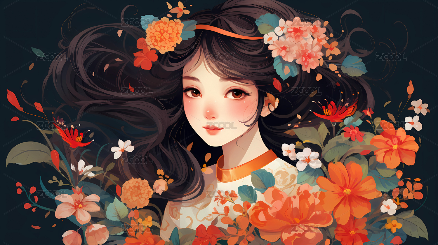 怀抱雏菊鲜花的古装女孩