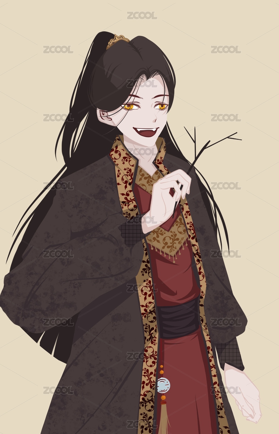 手拿木棍的古装邪魅男人