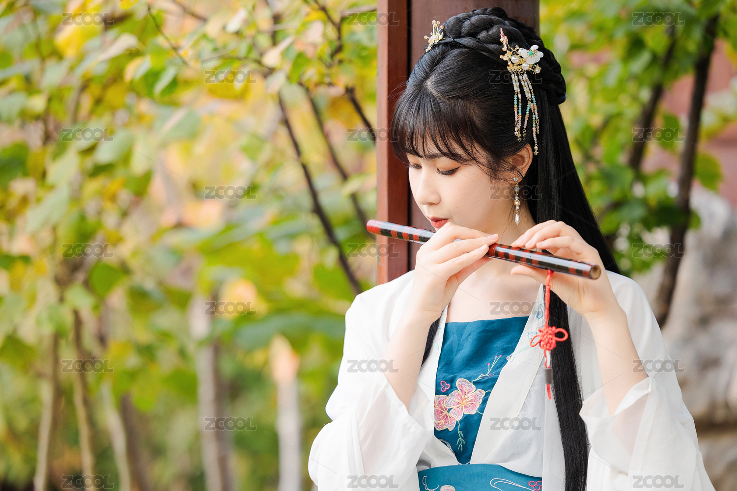 吹笛子的古装美女