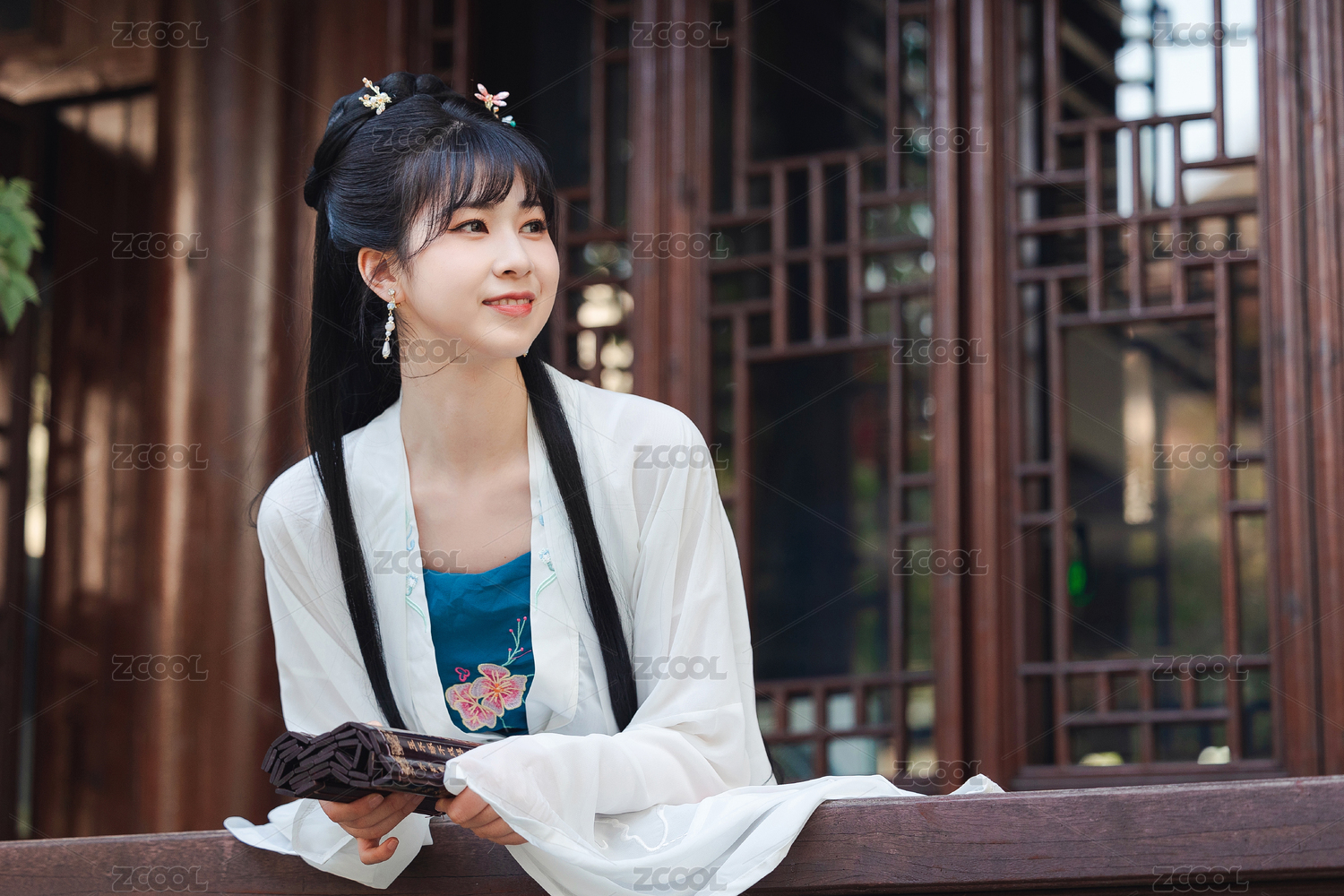 身穿古装汉服的东方女子