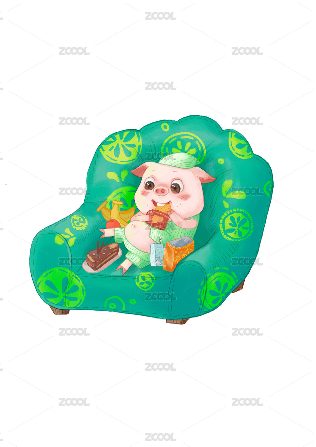 贪吃小猪吃着天上掉下来的饼