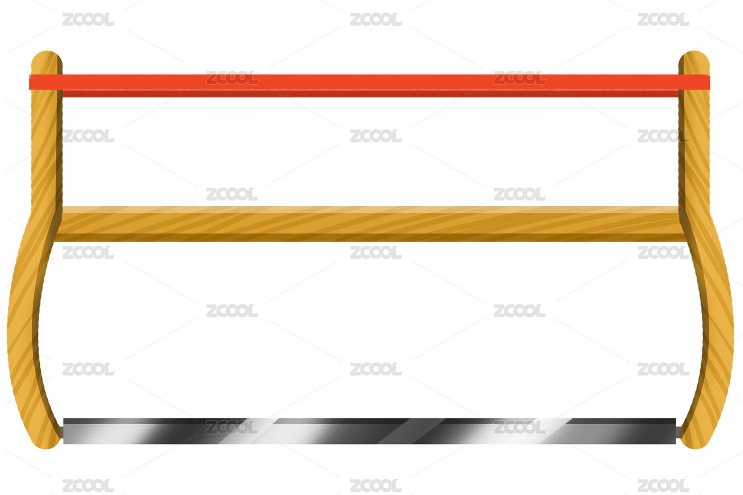 白色背景上放着一把 黄色的锯子跟一根锯条