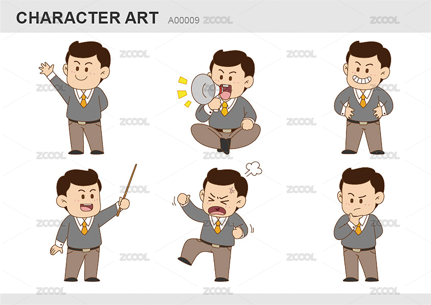 矢量卡通人物角色:生意男的各种各样情绪表情生意失败忙碌工作