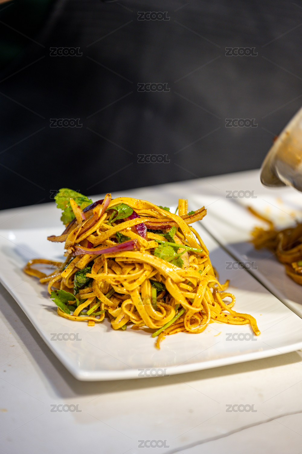盘子里的麻辣干拌面重庆小吃鸡丝凉面