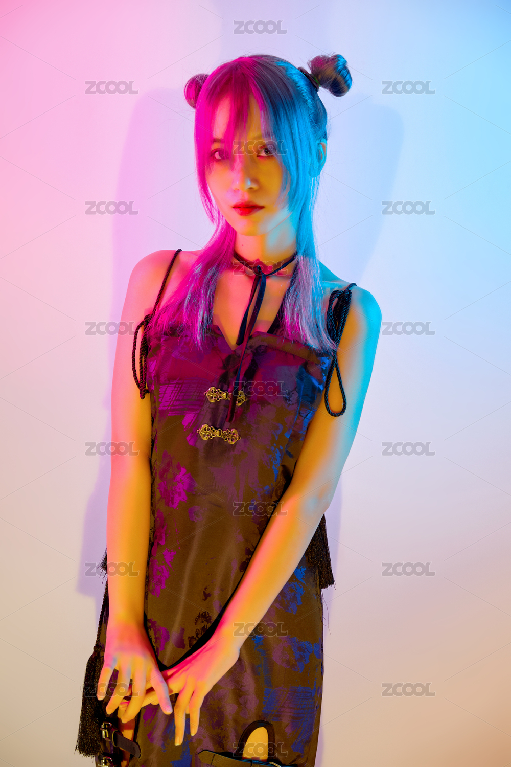 国潮风混搭赛博朋克风格的亚洲旗袍少女
