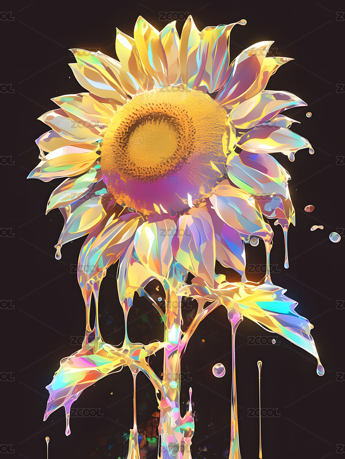 赛博朋克风格透明质感炫彩梦幻花卉兰花花朵