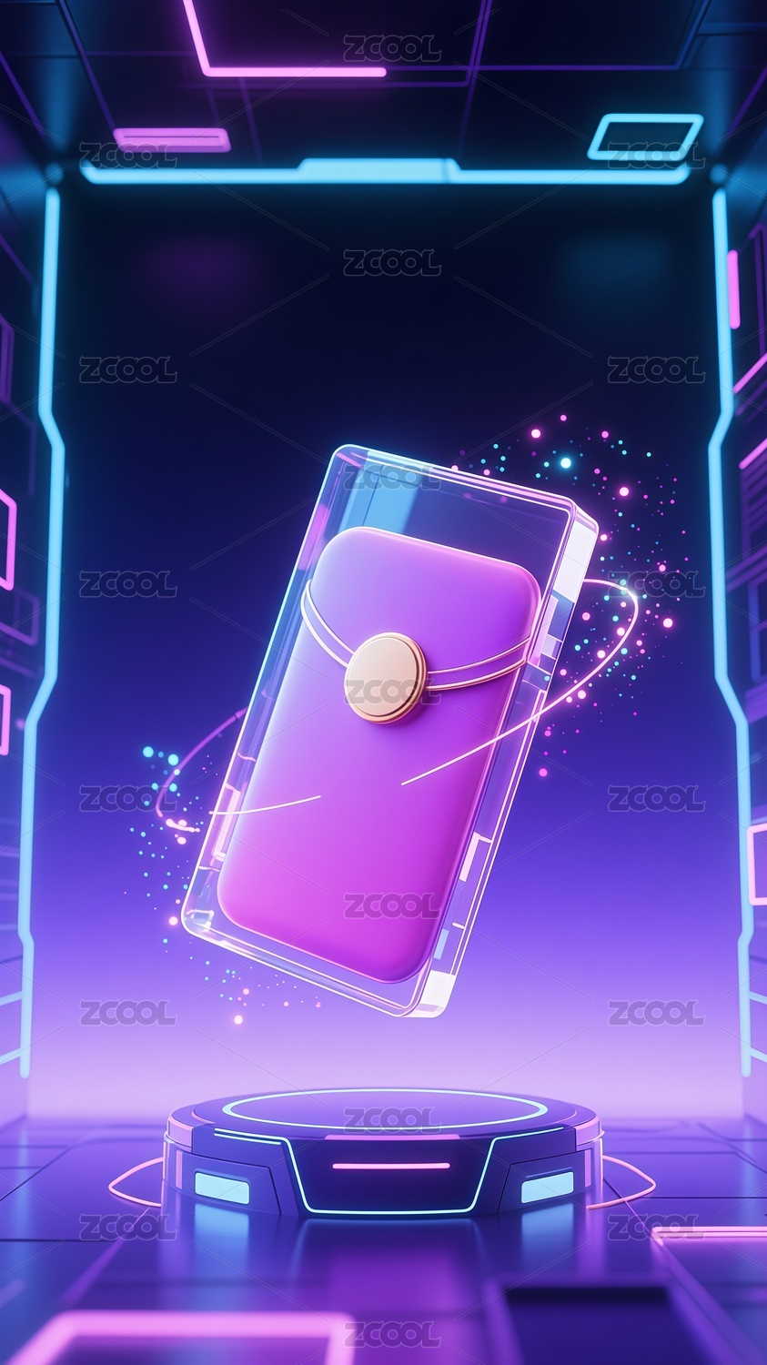 赛博朋克风格透明科技感红包插画