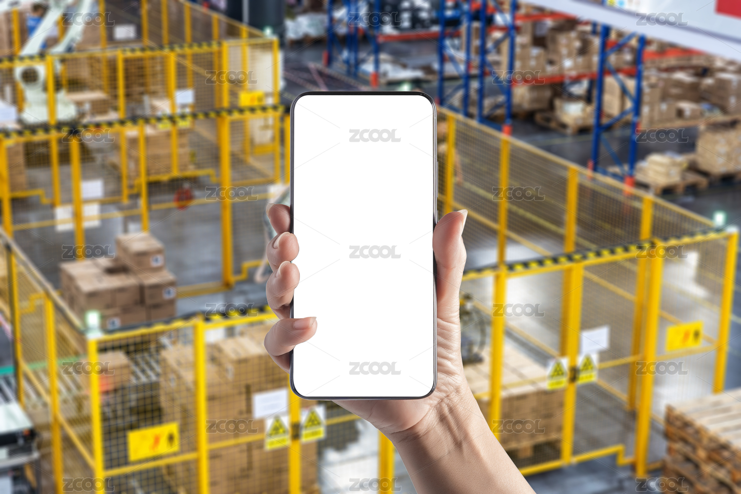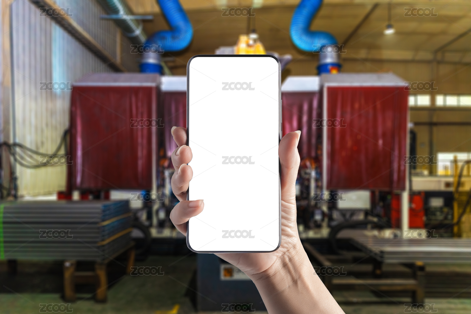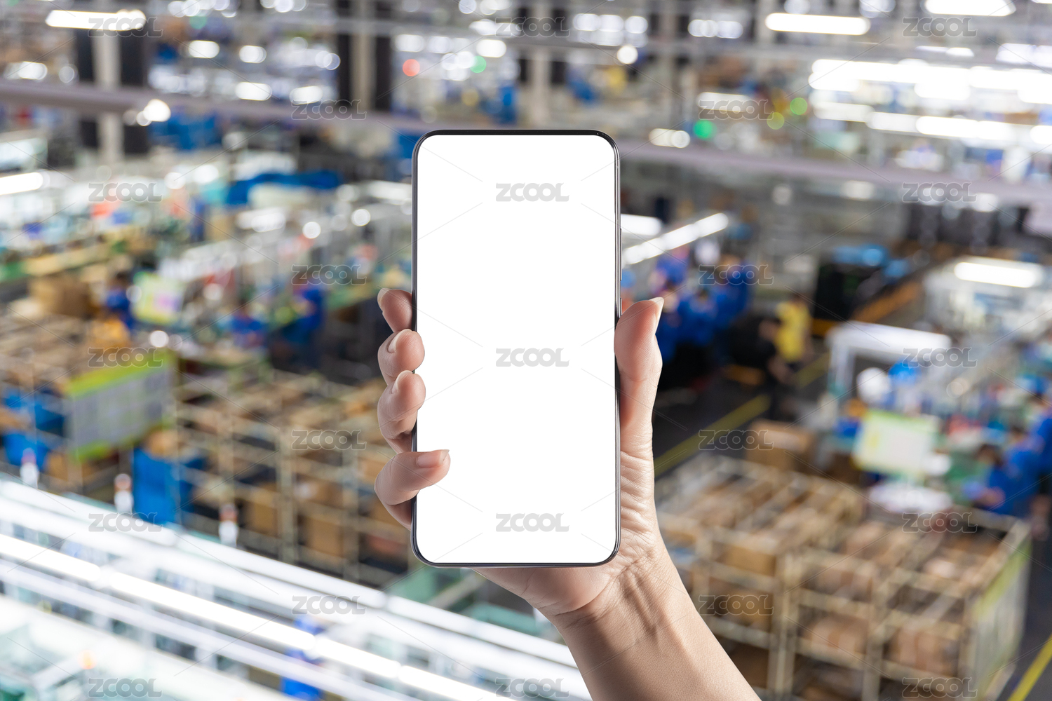 现代智能工厂车间手拿手机APP素材