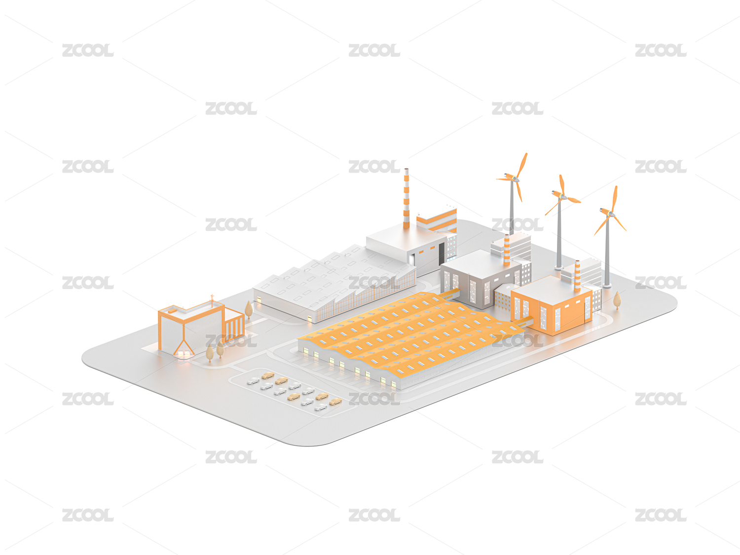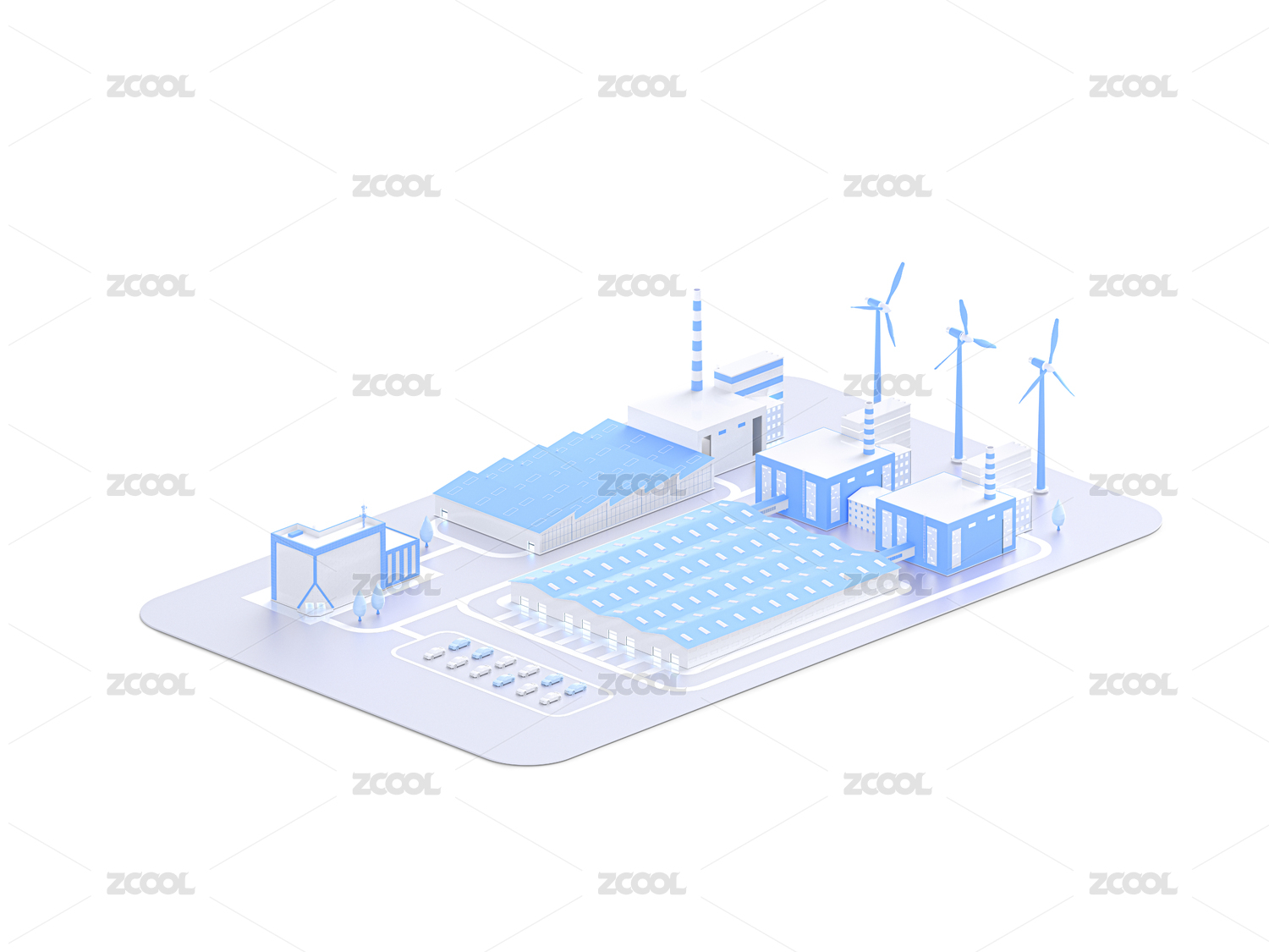 3D风格智能工厂概念插画