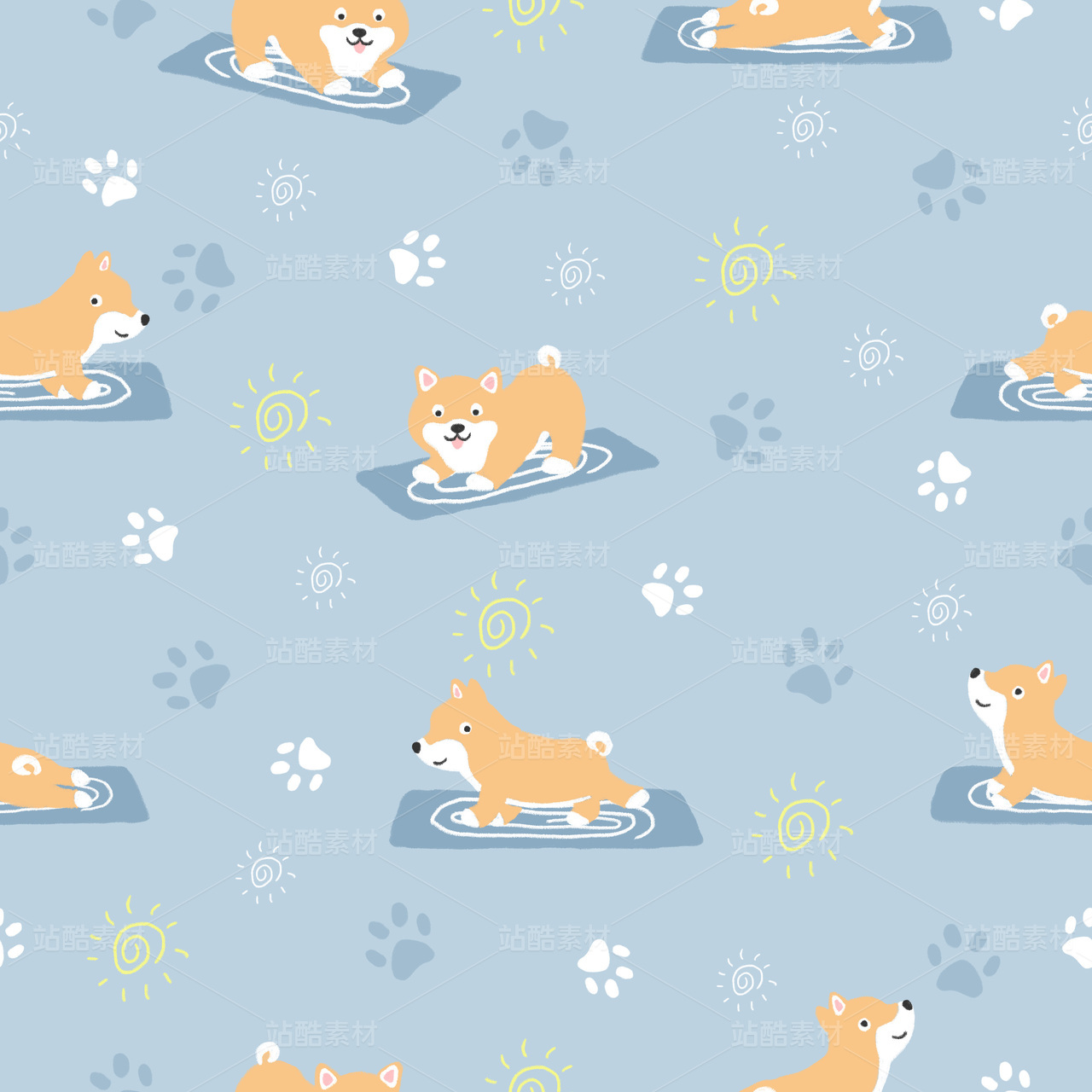 柴犬做瑜伽炭笔手绘风PS分层四方连续图案