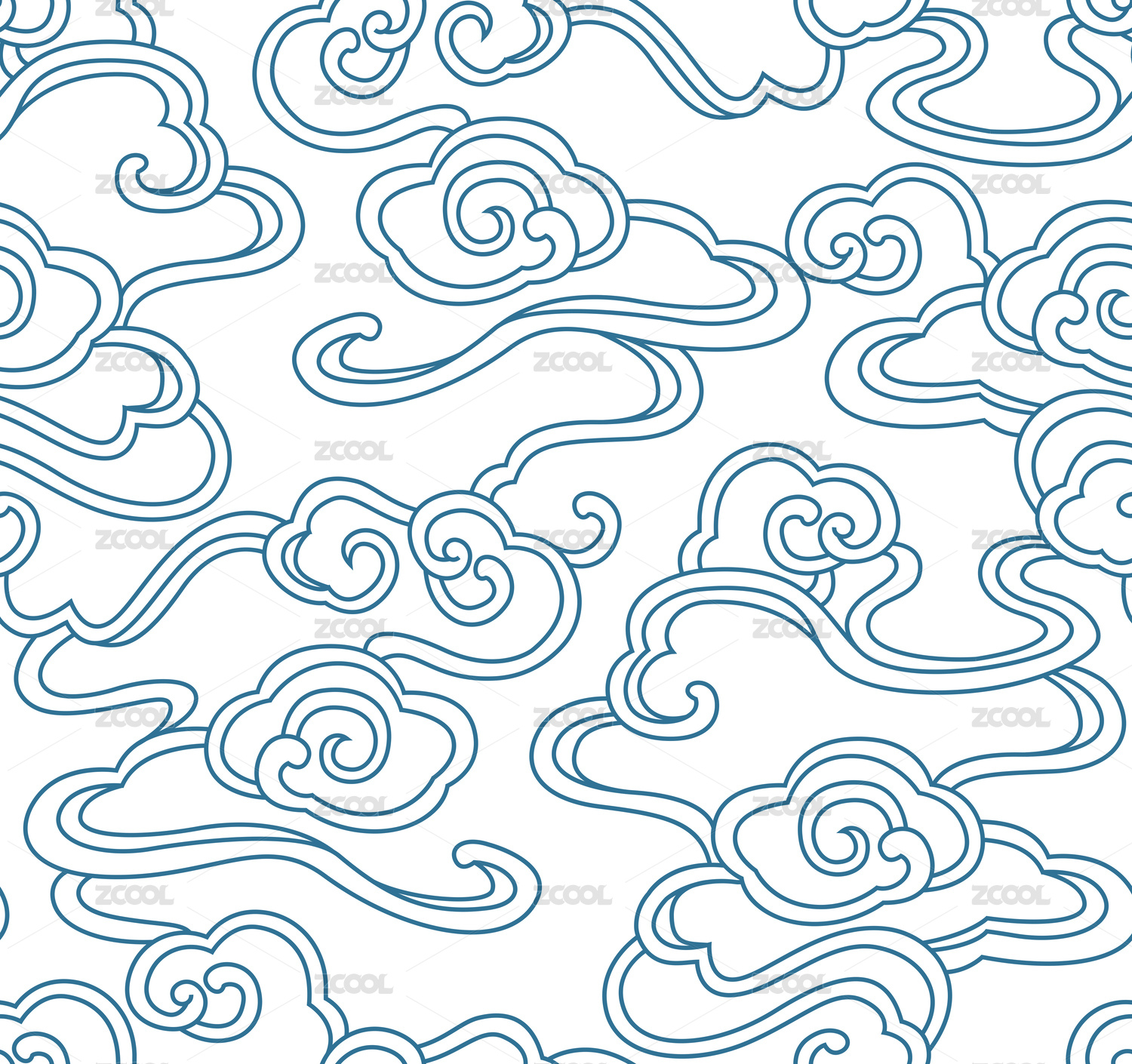 无缝的祥云背景连续图案白色背景