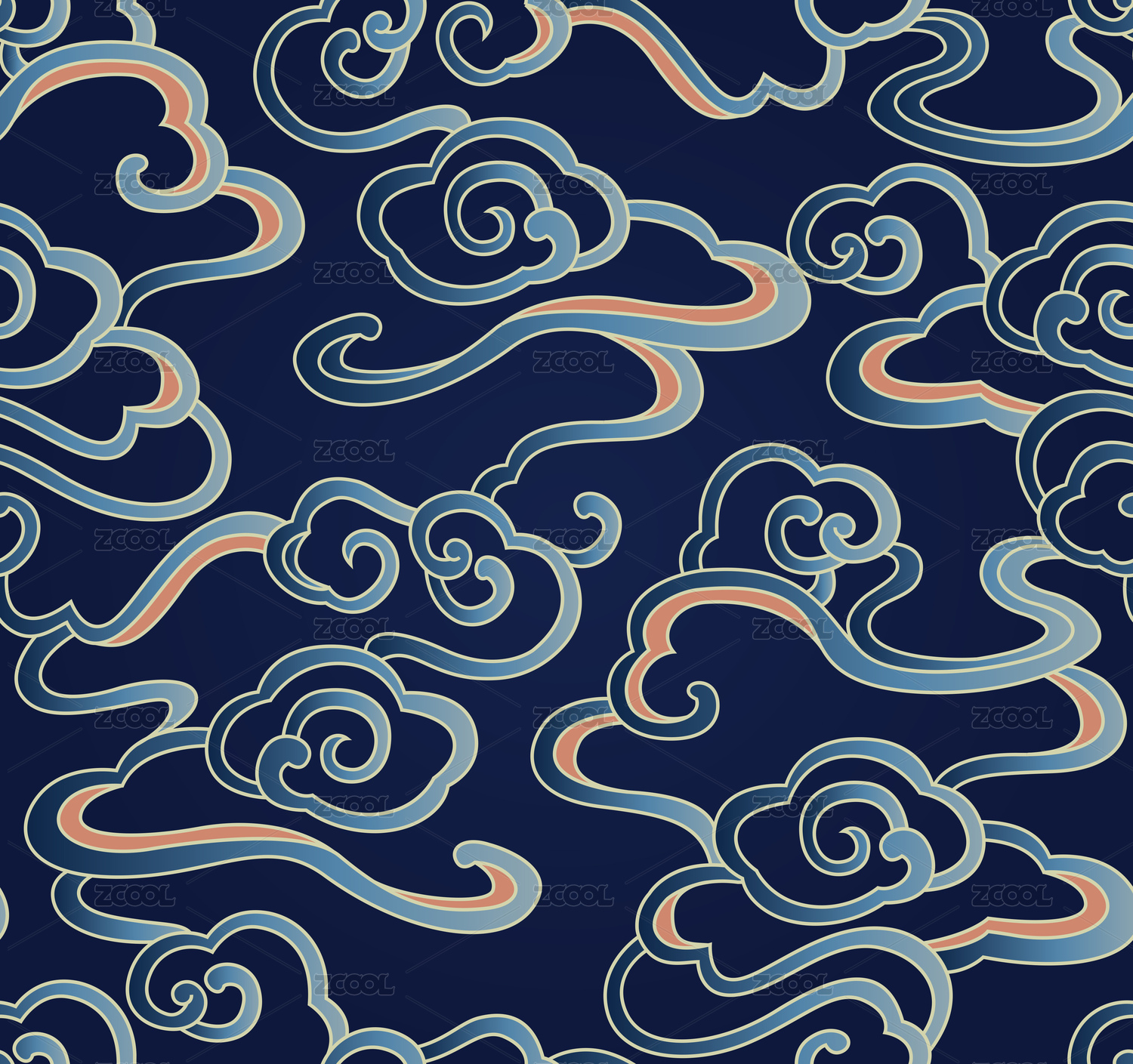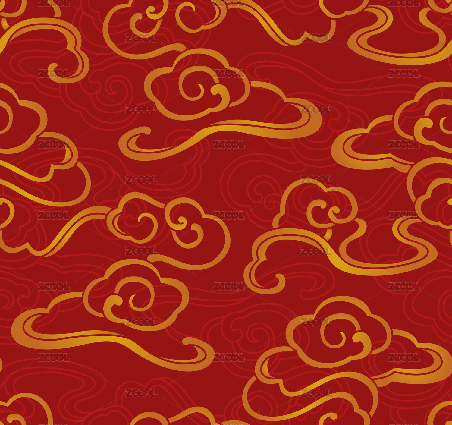 无缝的红色祥云背景连续图案