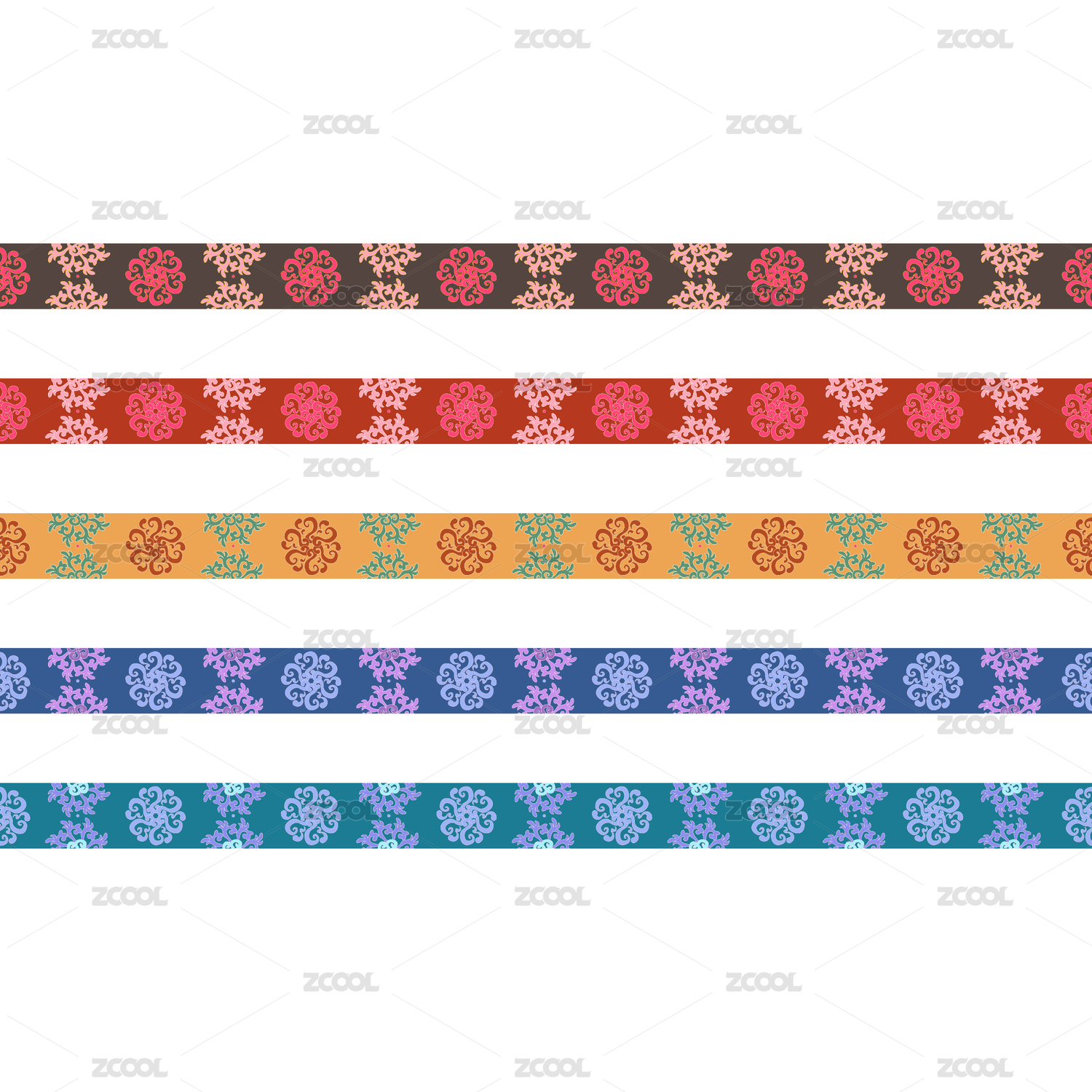 敦煌纹样二方连续图案无缝纹理图手账贴纸