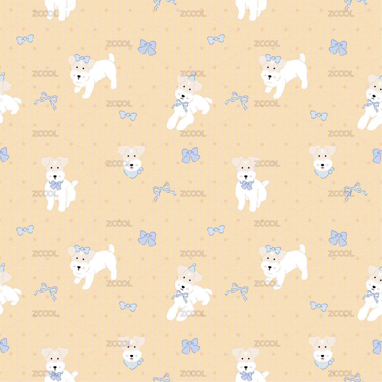 刚毛猎狐梗可爱小狗四方连续图案