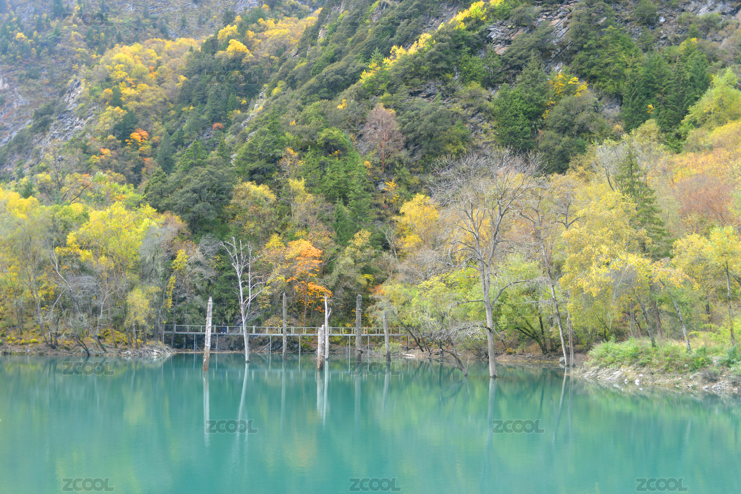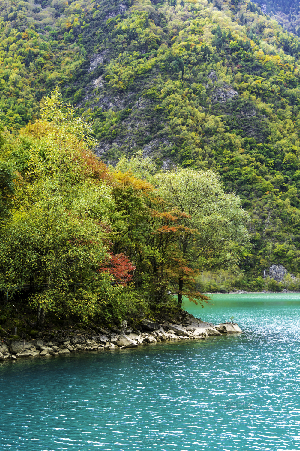 四川阿坝叠溪松坪沟秋色水面光影自然风光