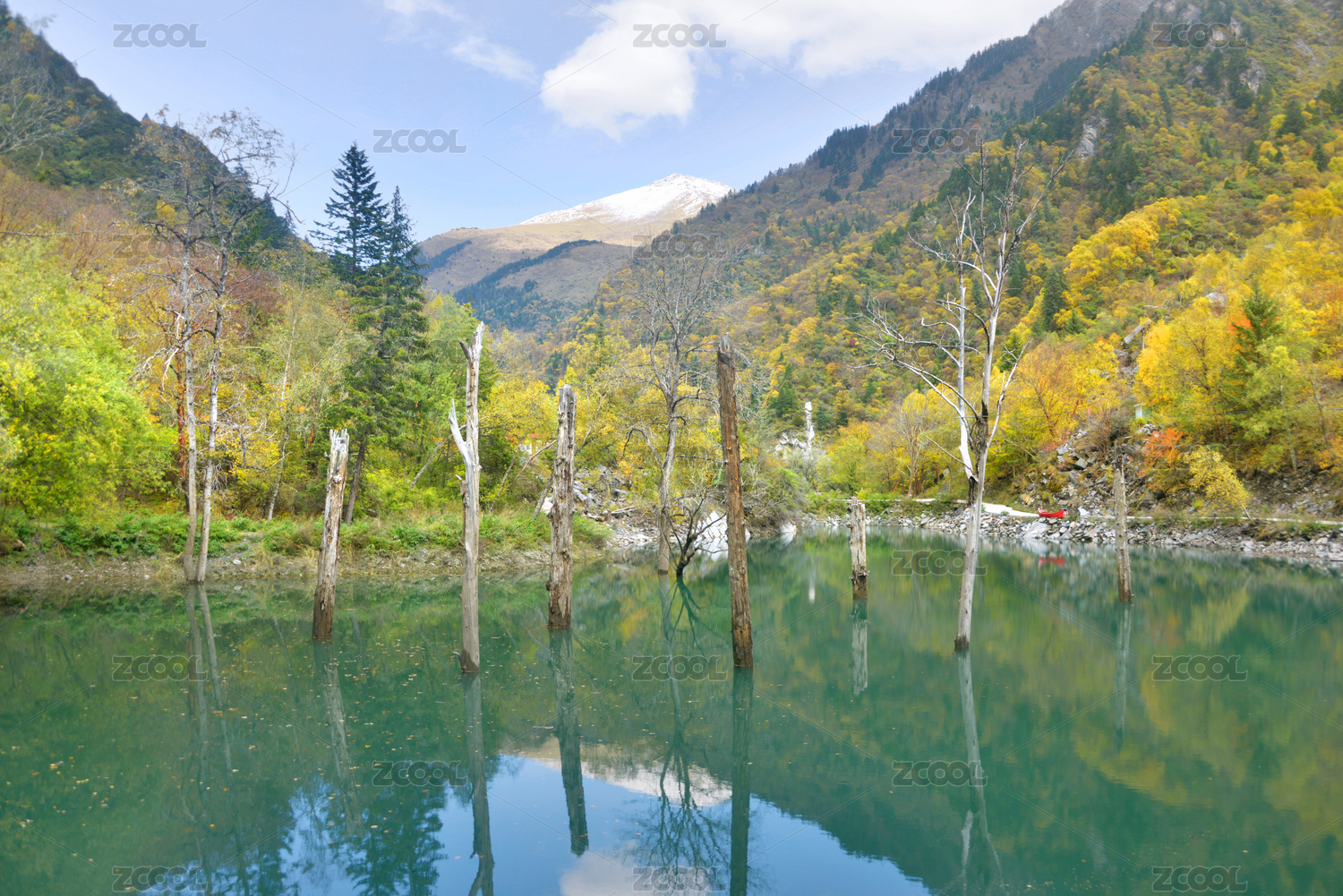 四川阿坝茂县叠溪松坪沟景区彩林及长海水景