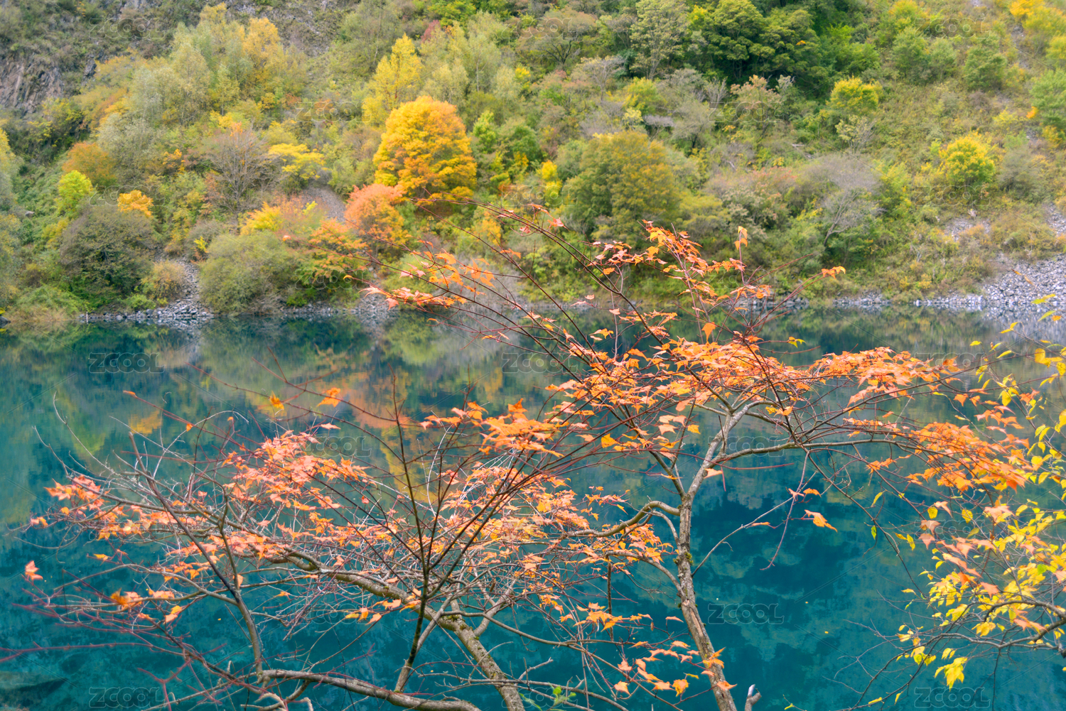 四川阿坝叠溪松坪沟墨海海子秋天彩林红叶