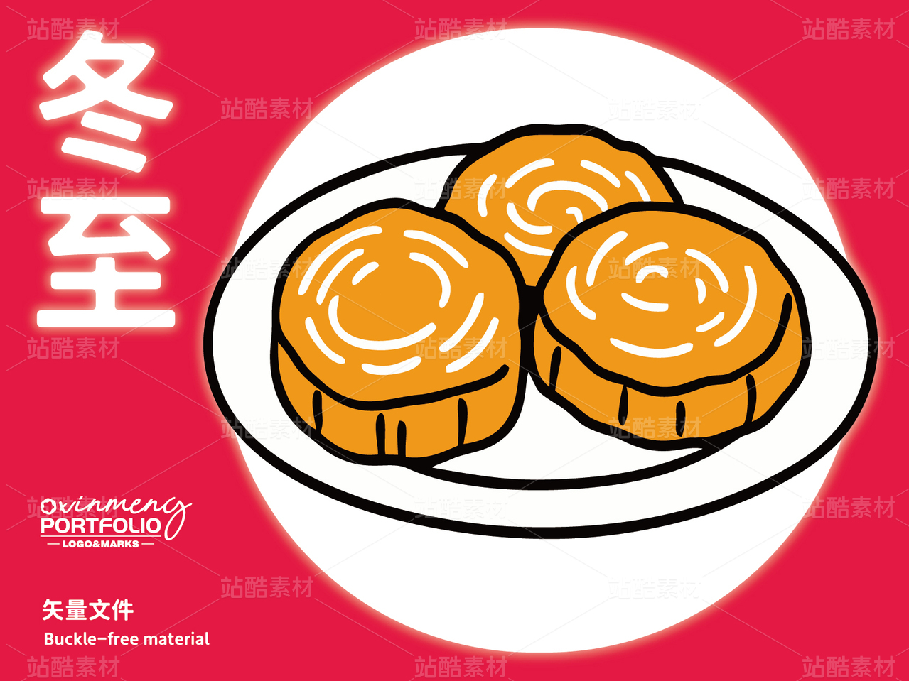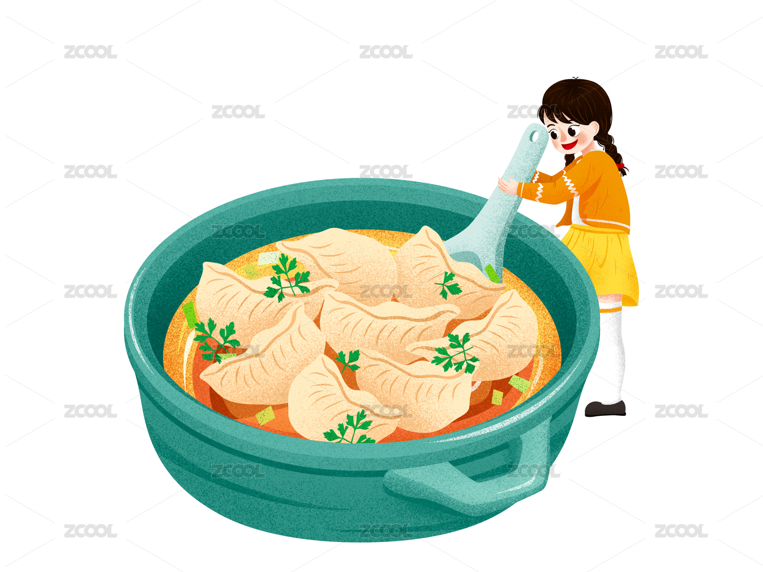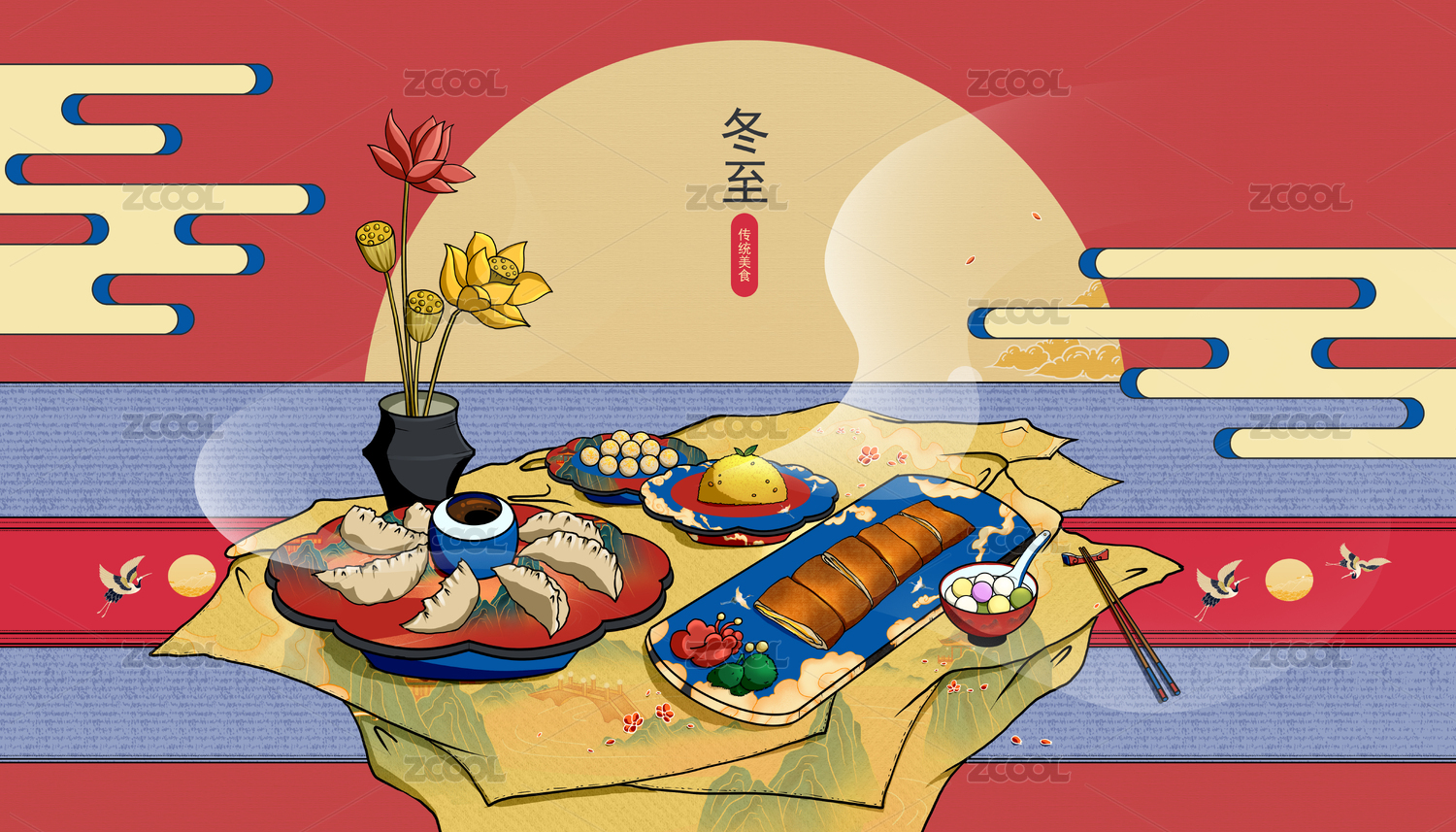 二十四节气冬至一盘水饺和筷子矢量海报素材