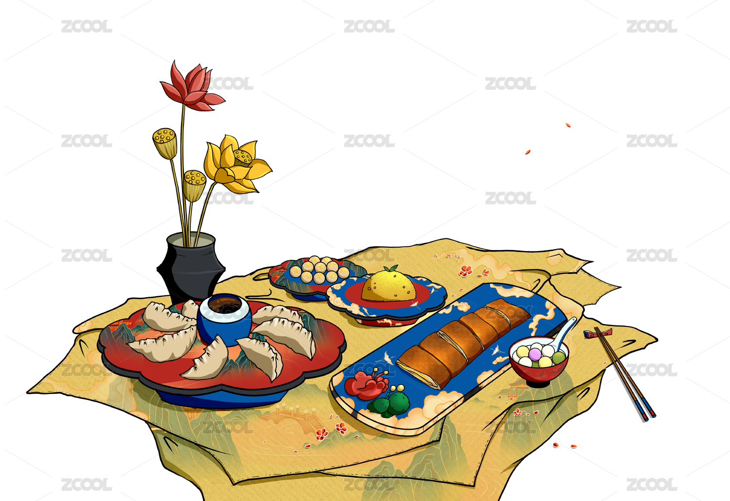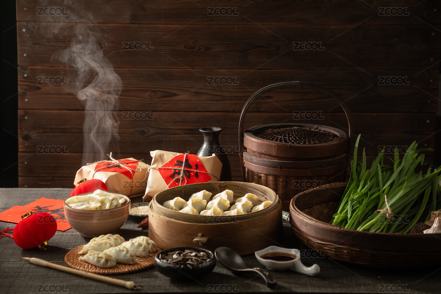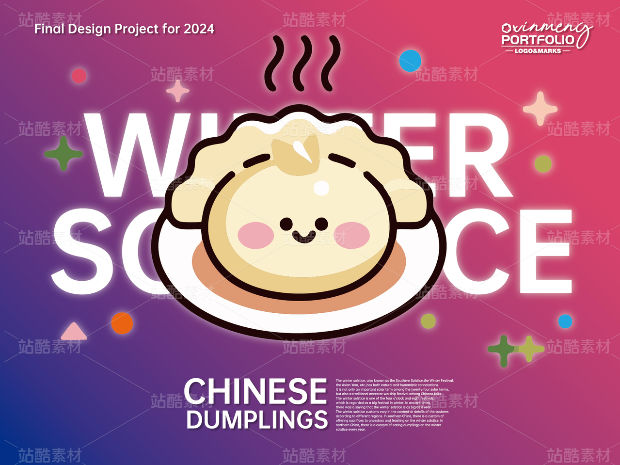 二十四节气冬至一盘水饺和筷子矢量海报素材