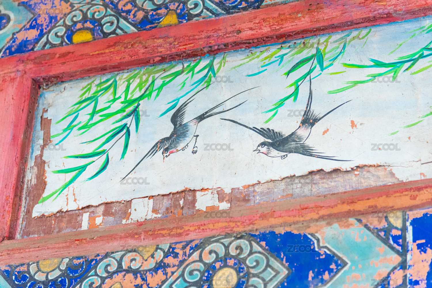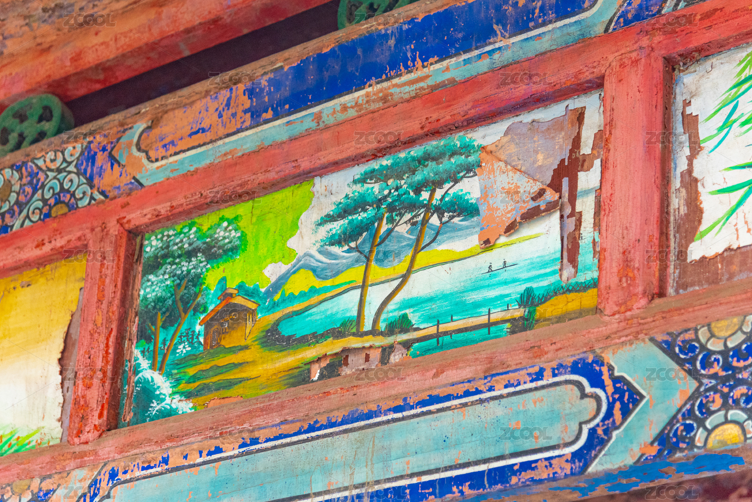 古建筑房檐下的彩绘画