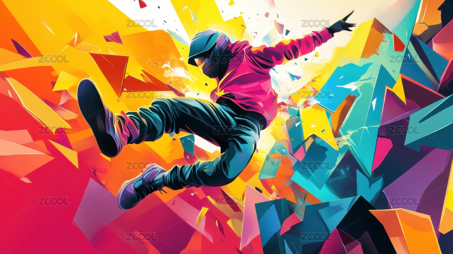 潮流动感街舞少年彩色涂鸦卡通插画