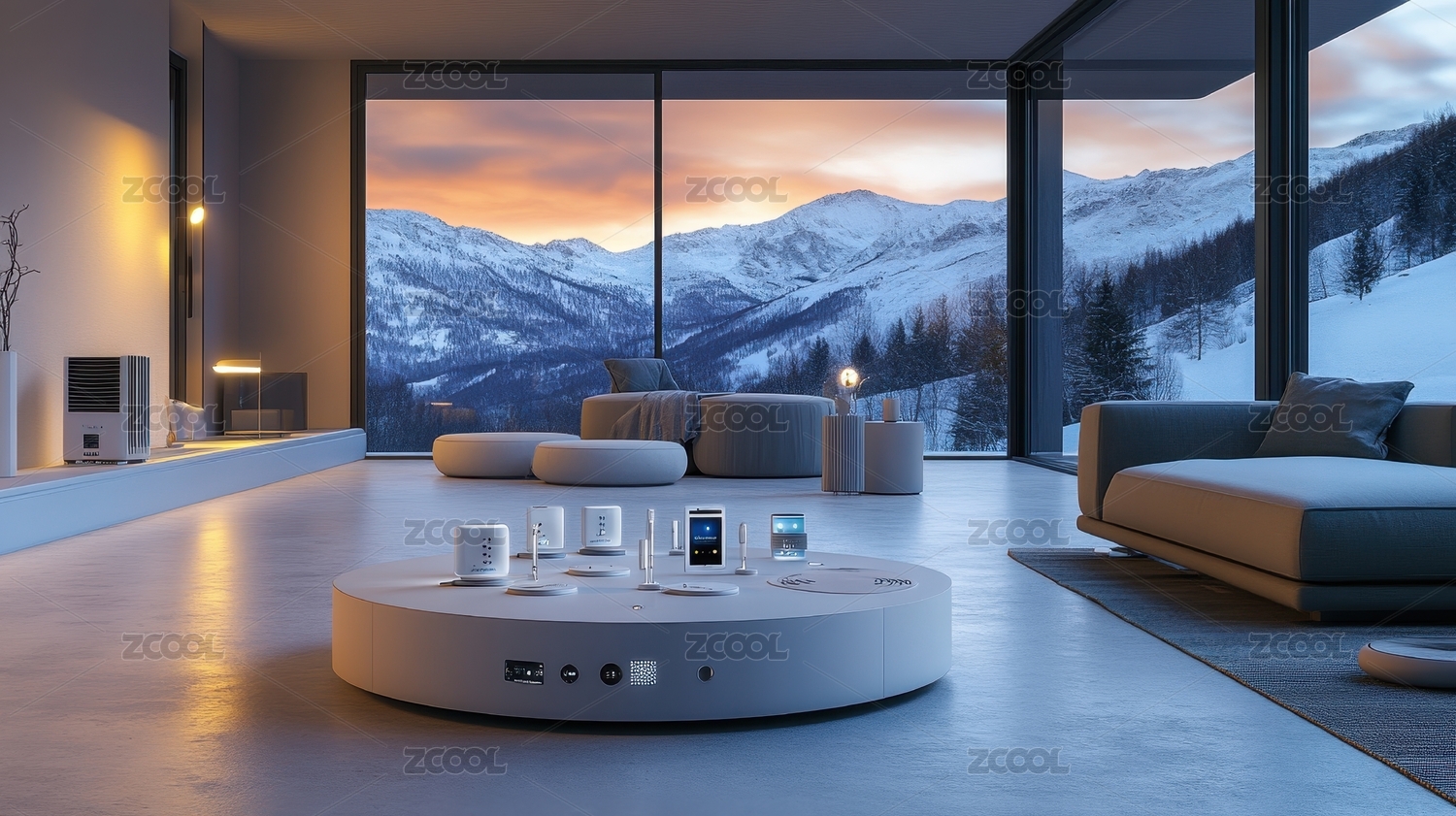 智能家居控制中心冬日雪山美景