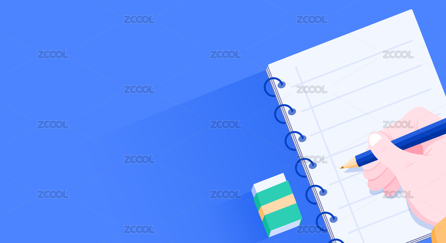 一只手拿着铅笔记笔记旁有一颗橡皮擦