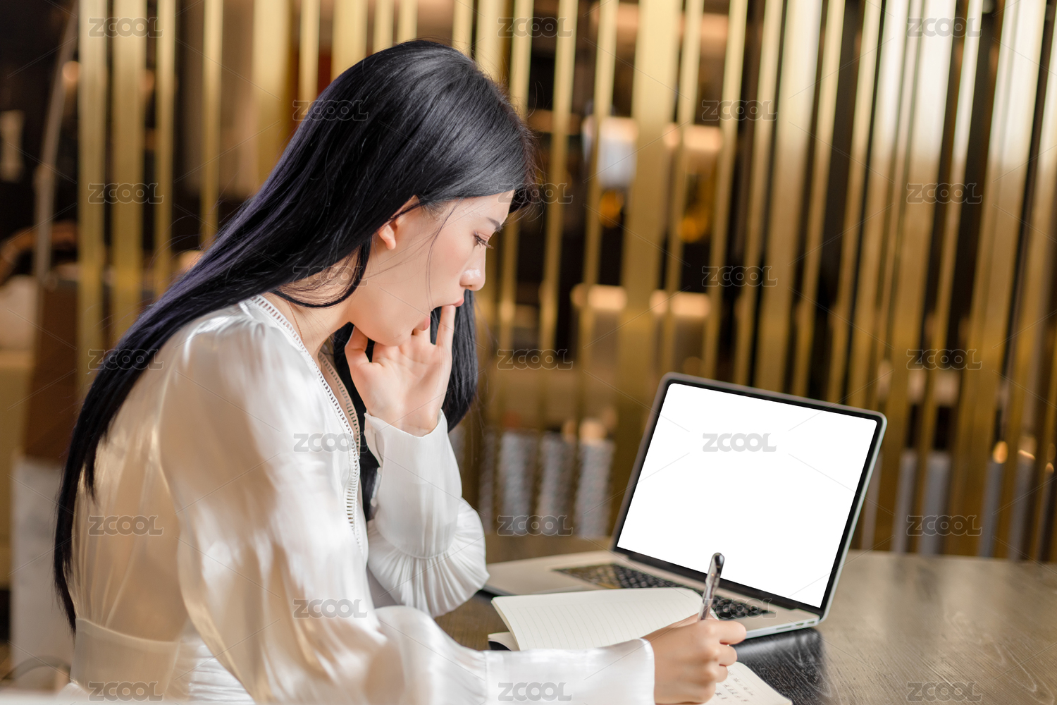正在记笔记的职场人士局部