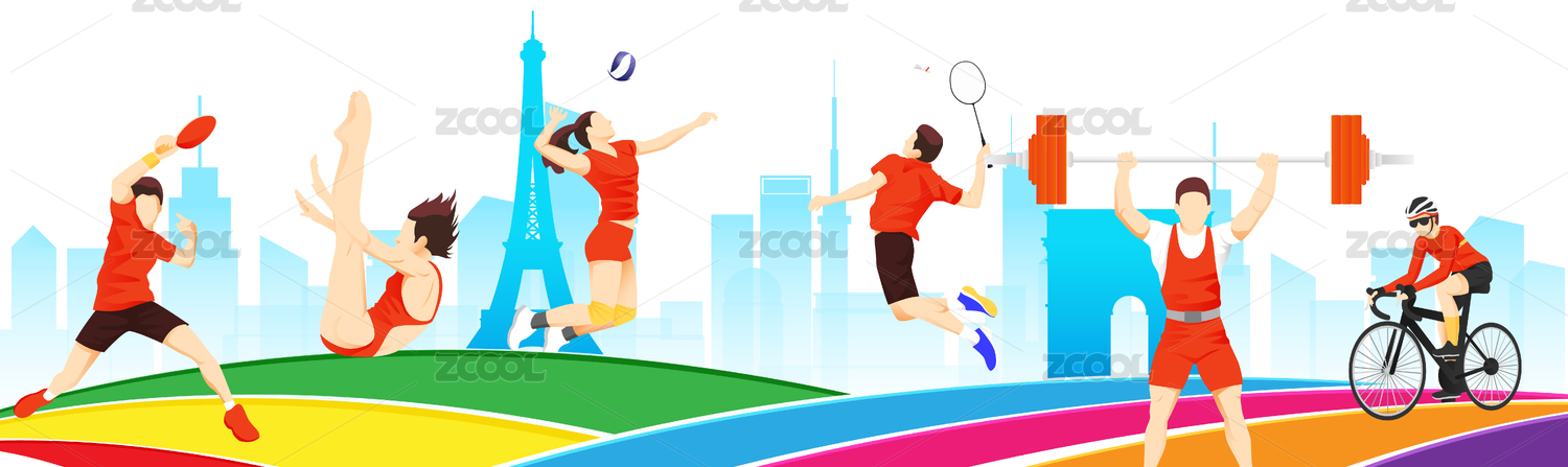 2024巴黎奥运会中国运动员人物矢量插画