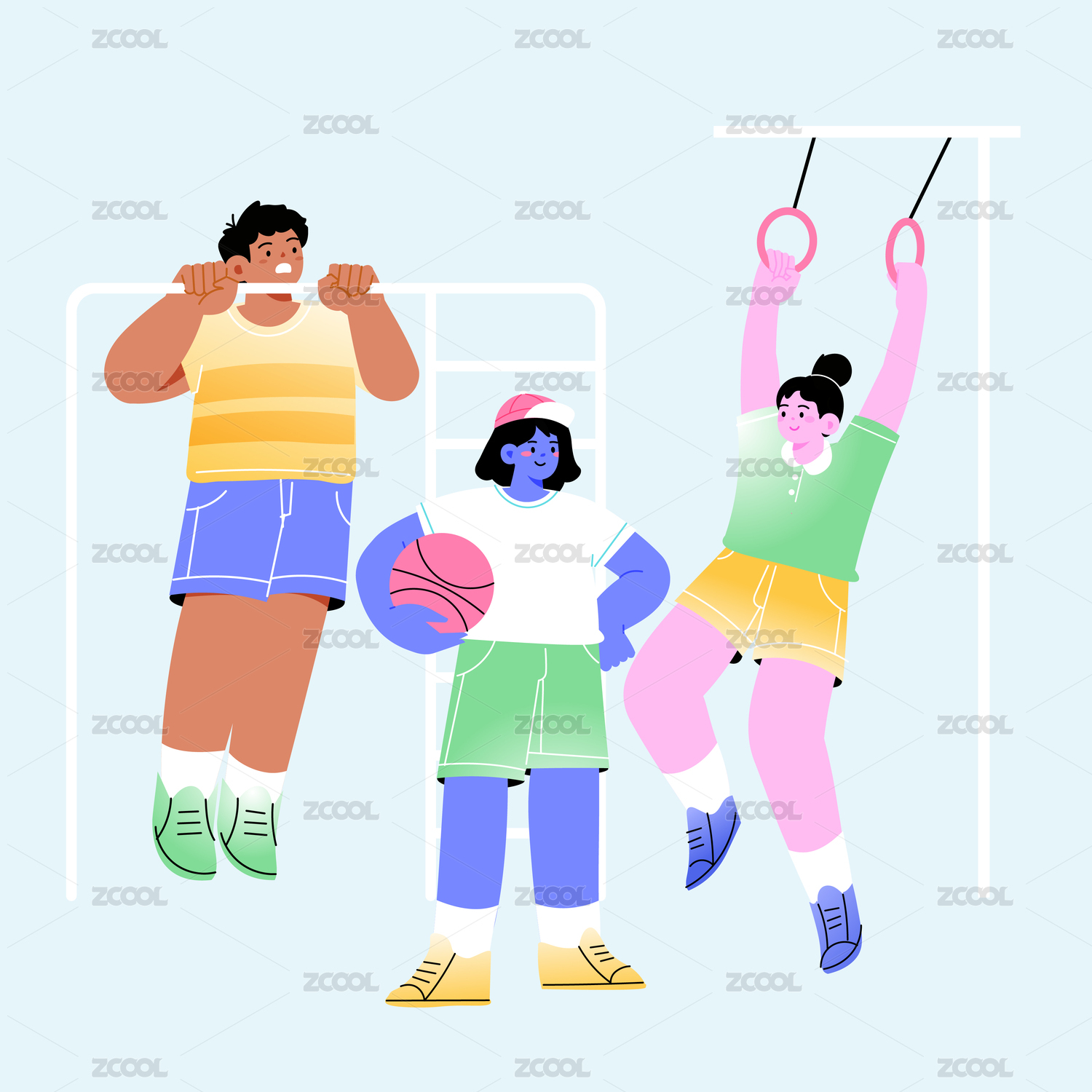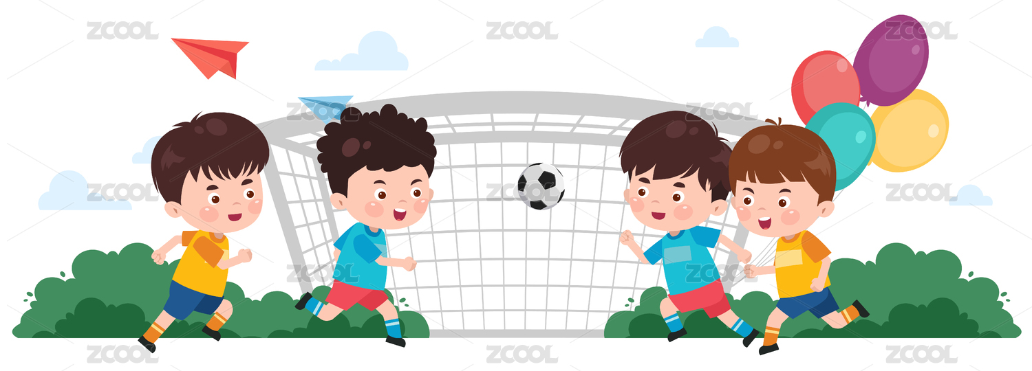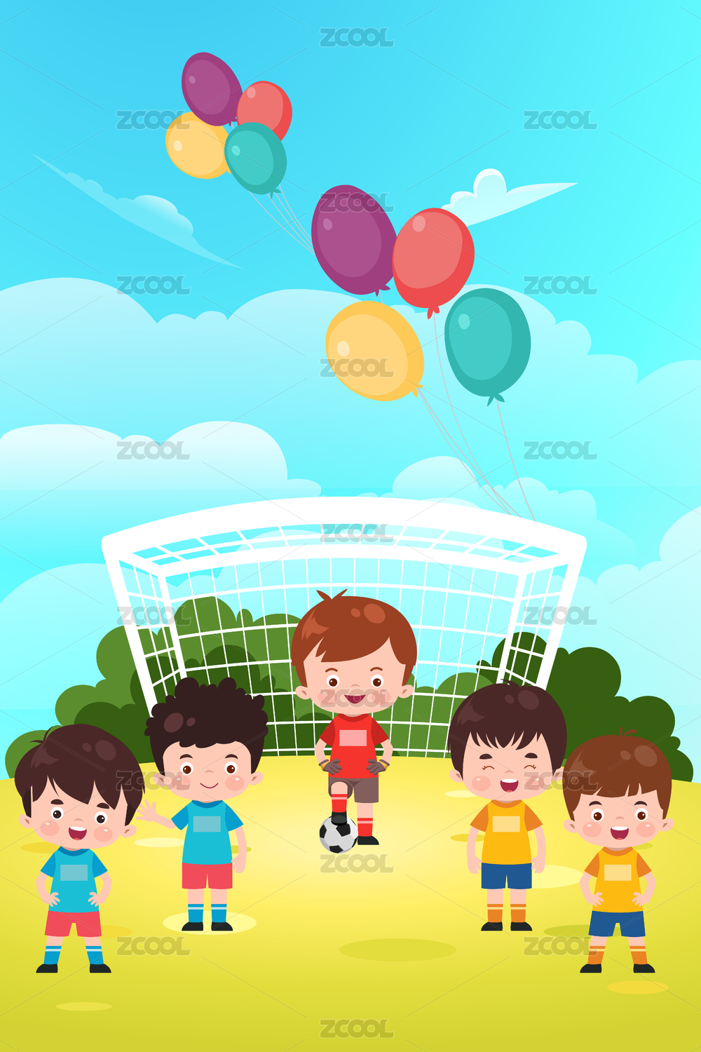 小孩踢足球运动儿童运动会比赛插画矢量图