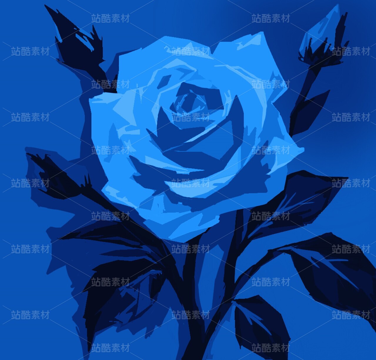 蓝色玫瑰插画艺术作品