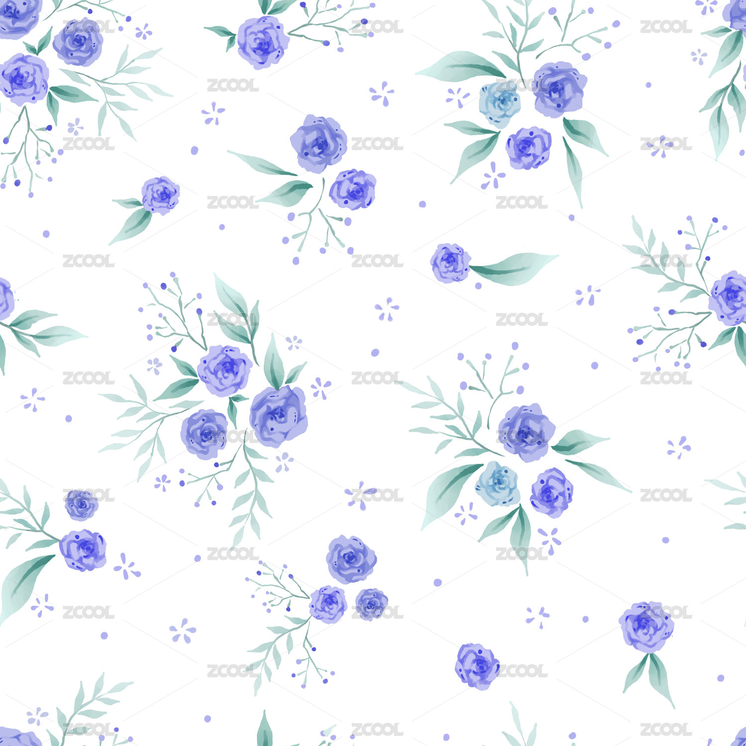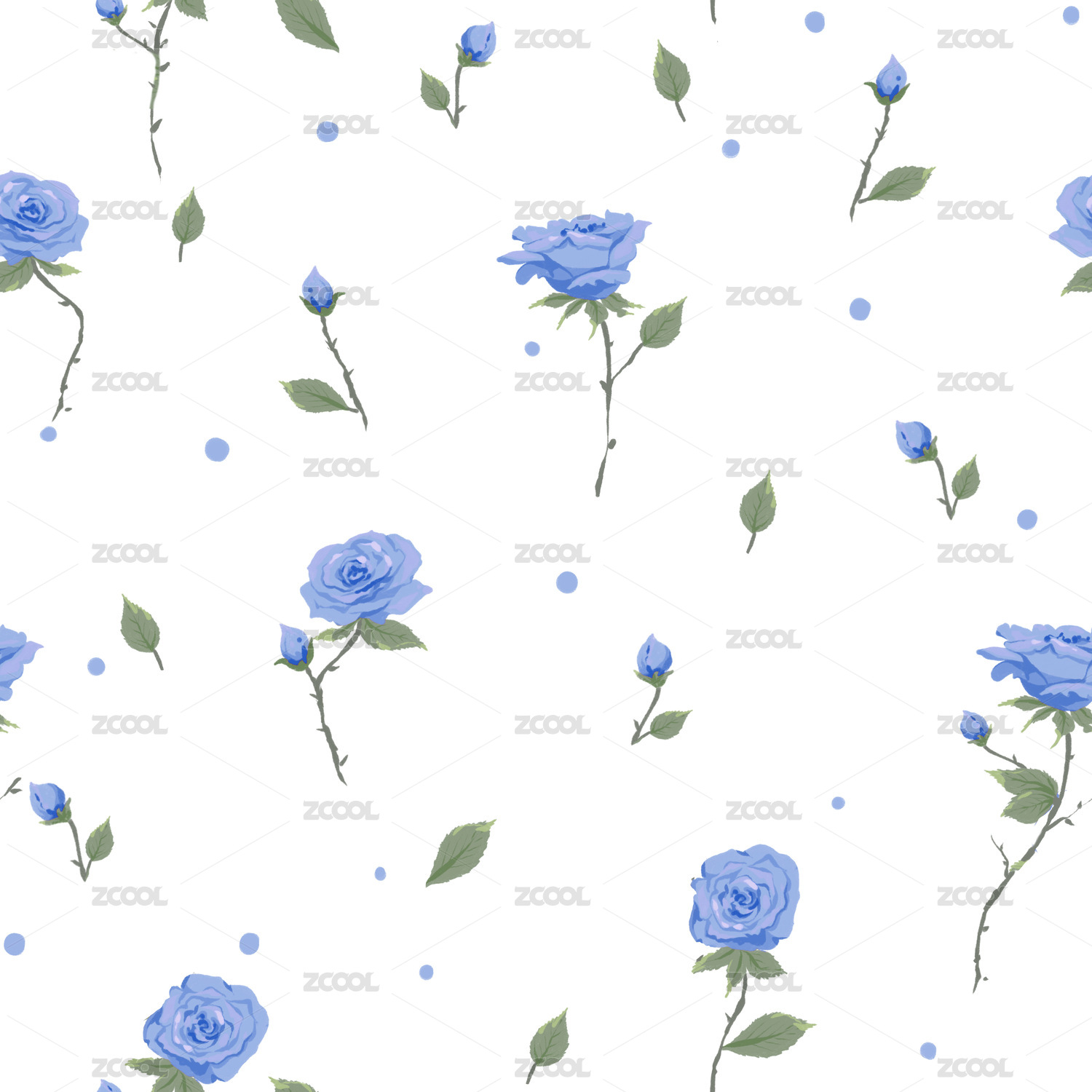 蓝色玫瑰四方连续无缝图案