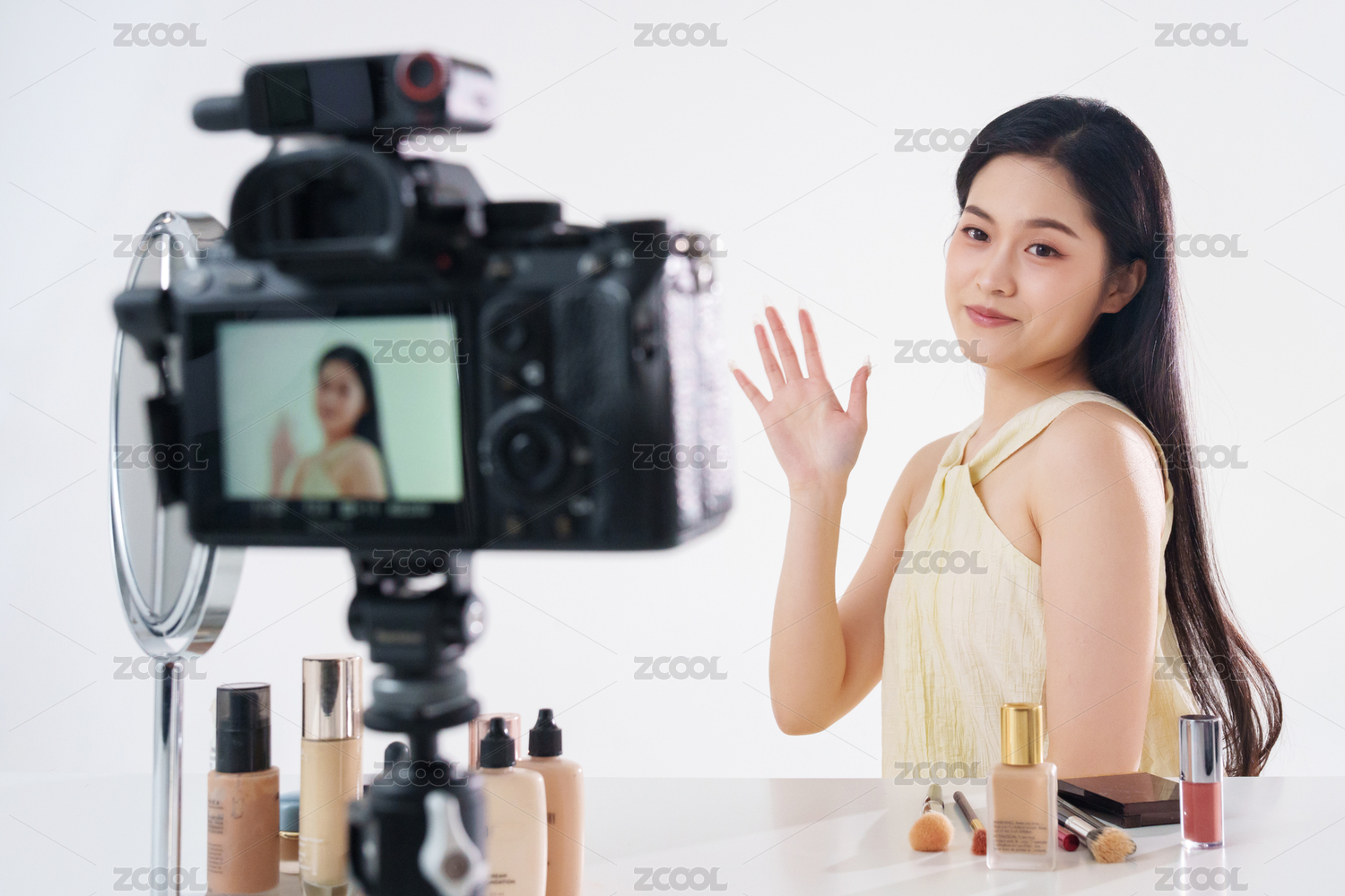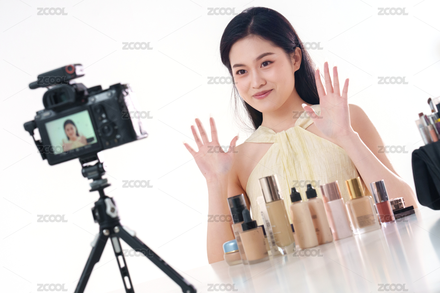 年轻女主播直播美容产品