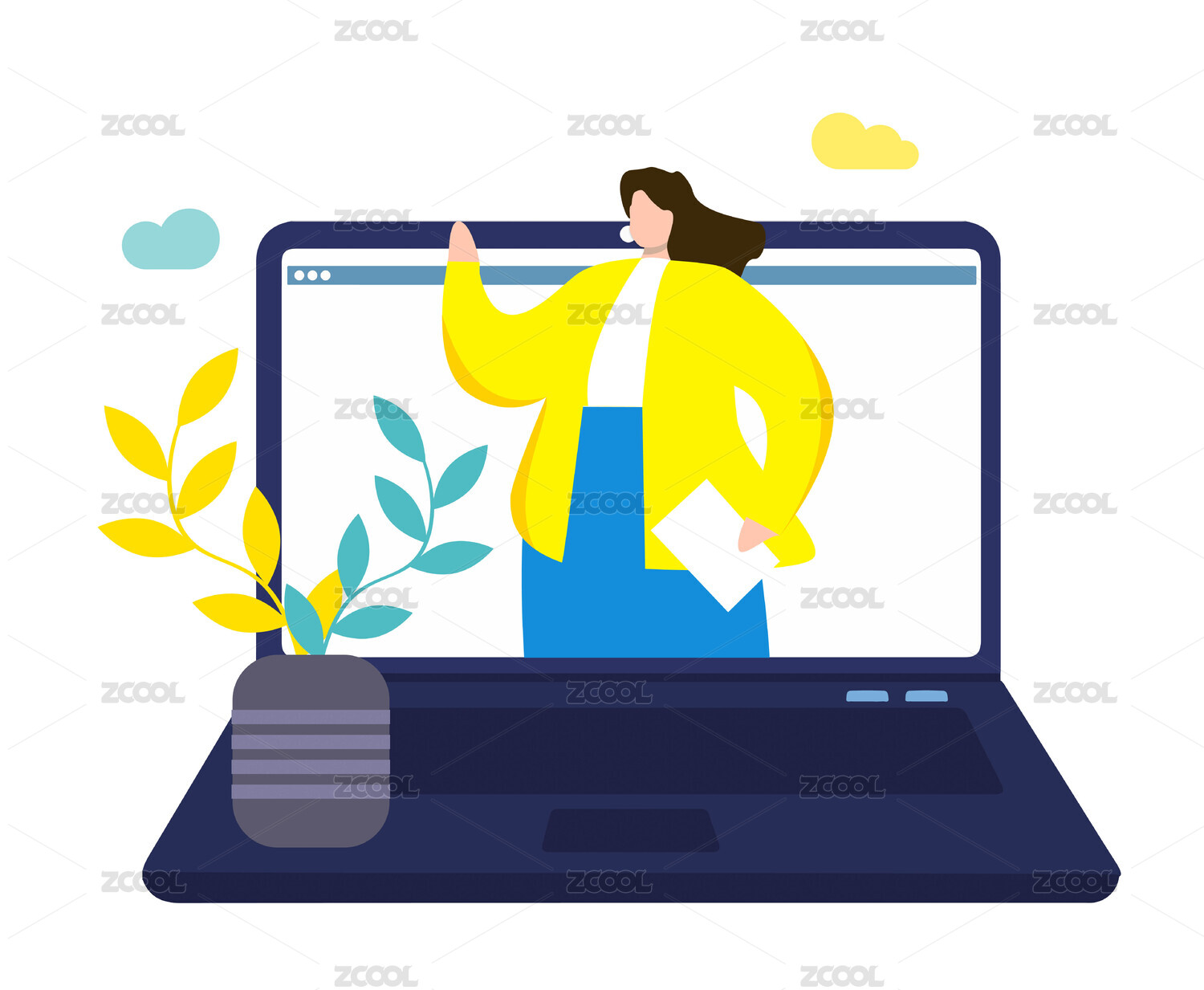 扁平风女主播在线直播买化妆品卖货插画