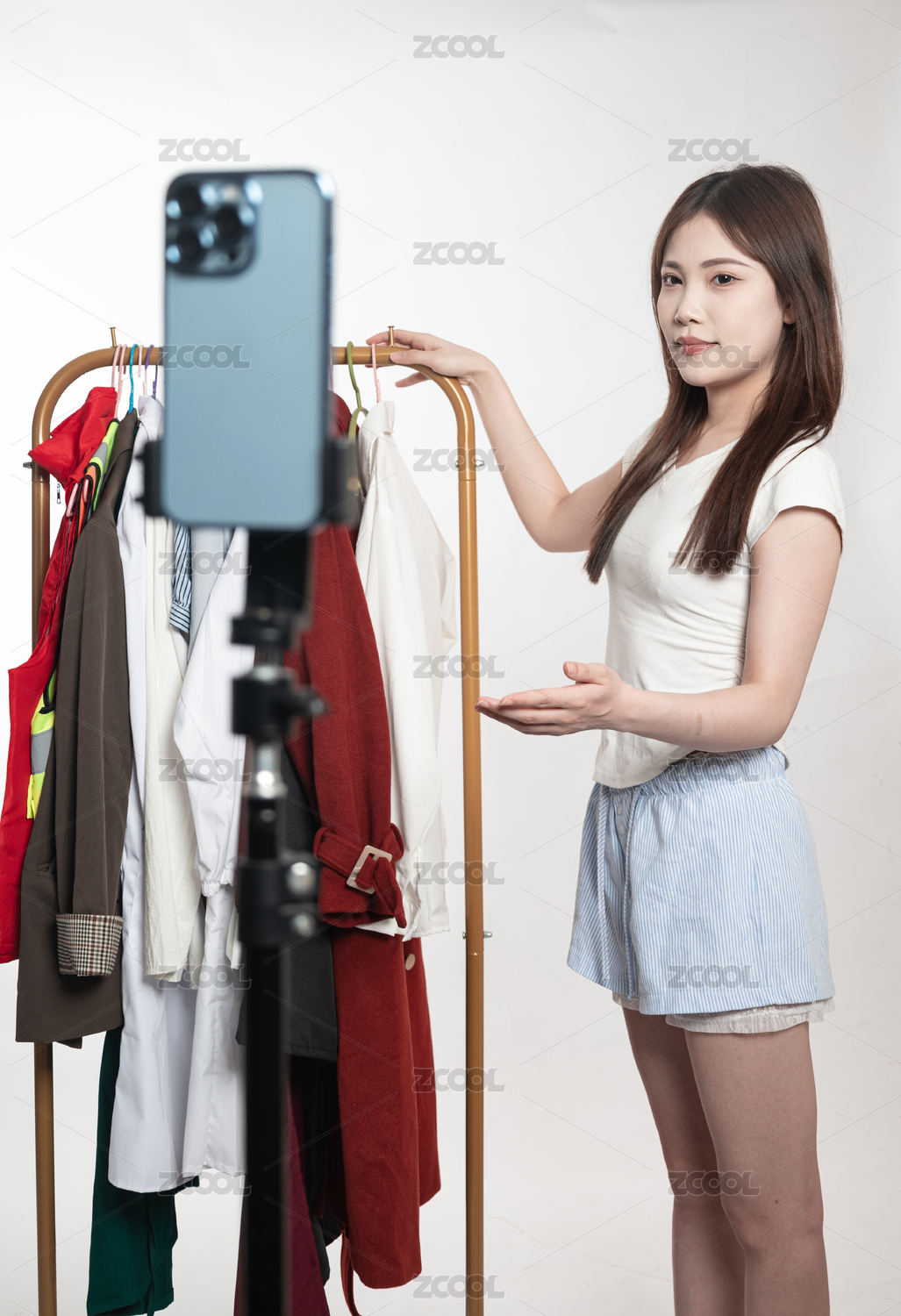 对着手机直播的亚洲青年女主播